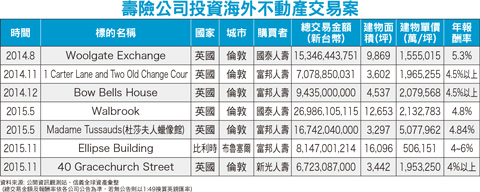 台灣錢淹腳目嗎?自從國泰人壽及富邦人壽大舉進攻英國倫敦商辦大樓後,似乎讓英國的地產開發商看到台灣的「錢勢力」,爭相來台推銷地產案,金額高達五、六百億元新台幣。英國商辦及住宅案來台試水溫台北市在五月一連有兩場英國地產發表說明會,分別是五日在君悅酒店舉行,由中國最大房產開發商之一「ABP總部基地」於二○一三年與倫敦市政府簽約,斥資十七億英鎊打造綜合開發案「皇家阿爾伯特碼頭開發計畫」先登場;接著則是七、八兩日在w飯店,英國第一大地產集團Berkeley Group(倫敦交易所掛牌公司代號:BKG LN)首度來台展售「Woodberry Down」第三期「The Nature Collection」。倫敦總部基地(ABP London)看好台灣市場的投資潛力,帶著旗下最新海外開發案「皇家阿爾伯特碼頭亞洲商務港」首度來台,營運長苗志勇表示,「台灣是相當重要的市場之一,近來在國際房地產市場上也看到了台灣企業以及投資客的實力,特別在英國倫敦置產的比例越來越高。ABP倫敦皇家阿爾伯特碼頭即將被打造成為一個亞洲企業專屬的商務港,希望台灣的企業和投資者把這個地方當作一個屬於他們的發展平台。」倫敦總部基地全球推廣傳播總監尼爾羅賓森(Neil Robinson)指出:「英國經濟強健復甦,辦公室需求持續增長。然而,受到債務危機的影響,倫敦的辦公室卻是供不應求。這意味著,倫敦的辦公室單位未來幾年仍是炙手可熱的投資標的。」羅賓森指出,倫敦皇家阿爾伯特碼頭是繼金融城、金絲雀碼頭之後,英國倫敦第三個商務區,ABP皇家阿爾伯特碼頭專案自去年巡迴香港及東南亞,開放預訂至今,已吸引十三家,包含英國、香港、印度等企區之企業簽約預訂辦公大樓,產業涵括生命科學、高科技、保險、金融、物流、建築設計等領域,如中國太平保險、英國City Interior和印度房地產集團Strawberry Star等。皇家阿爾伯特碼頭項目共分三期開發,而第一期規劃有二十棟商辦大樓,每棟預售金額從一千八百萬英鎊至二千六百萬英鎊,折合新台幣約為九億至十三億元,全區項目預計在二○二五年完工。壽險業對外投資額還有上千億元外商爭相來台搶錢,且帶來商辦大樓案,主要是看中台灣壽險業及企業界的實力,信義全球資產經理王維宏表示,自從金管會將保險業投資海外不動產風險係數降低後,大型壽險前仆後繼至海外獵樓,自二○一四年八月國泰人壽首先購買倫敦Woolgate Exchange,開啟壽險業投資海外不動產的熱潮,至二○一五年底三大壽險公司已有七宗交易,其中有六件都是倫敦的整棟大樓交易案,另外一件則是富邦人壽在布魯塞爾的投資案,累計投資額達新台幣九百多億元。另根據金管會保險局的粗估,包括國壽、富邦及新光等三家壽險公司手中可對外投資的金額更有上千億元。王維宏表示,英國倫敦是世界金融重鎮,設點的國際企業多,商辦市場需求相對穩定,且對外資投資不動產限制少,因此成為壽險公司海外不動產投資首選。國內三大壽險公司紛紛插旗倫敦,六件交易案中,最為國人所知的當屬富邦人壽購買的杜莎夫人蠟像館,地處市中心精華區,不止租約穩定、租期也較長,成為當中建物單價最高的一項案件,其他五件投資案,則屬於收益型商用不動產,當中以國泰人壽Walbrook一案投入金額最高,建物面積也最大,該案位於倫敦金融城,出租率高達九成(見附表)。台灣資金豐沛 吸引外商搶錢此外,台灣在政府打房後,興起赴海外置產的熱潮,去年出走資金高達上千億元,另根據金管會統計,國內銀行到今年一月底的存款餘額為三十.一兆元,放款餘額僅二十二兆,存放款差距高達八兆之多,難怪包括倫敦、馬來西亞、柬埔寨、泰國及菲律賓的住宅建案,爭相來台搶錢。長富國際地產公司總經理鄭哲昇表示,「有土斯有財」這五個字,一直是中國人多年深植在心的投資口訣,包括美國、加拿大、日本及澳洲等國房地產,來自台、港及中國大陸三地華人,佔了所有外人投資的泰半,可見華人多熱中投資房地產。鄭哲昇表示,英國房地產憑著成熟完善的房地產交易制度及位居歐洲財經重心的優勢,過去二十年一直是全球投資者爭相投入的重點地區。特別是近十年來的超低利時期,為獲取中長期穩定的房地產收益報酬,國內各大金控業者不約而同都把房地產投資焦點指向英國,可看出英國房地產的投資魅力。於五月七、八日兩日,大手筆地在W飯店舉辦的英國Berkeley Group旗下Berkeley Homes品牌,強項為造鎮計畫,擅長規劃大型建案,而此次來台強銷的「The Nature Collection」,共一四○個單位,規劃十五至六十坪房型,每戶總價四十二.五萬英鎊,折合新台幣約一九五五萬元起,業者打著台北市舊公寓換取倫敦市中心頂級新成屋為銷售訴求。引介英國Berkeley Group集團來台的是國內業者,新財富集團總裁黃欣嵐表示,英國房產實施實價登錄已逾百年,房產制度規劃健全,根據英國最大、最具公信力的房地產網站Right move分析,英國倫敦住宅長期供不應求,每年房價平均以八~一二%穩定增值,且據英國皇家特許測量師學會(RICS)、第一太平戴維斯(Savills)、英國抵押貸款理事會的調查分析,未來五年房價仍將持續上漲至少二五%。此次銷售建案「Woodberry Down」為與當地Hackney行政區合作的都市更新計劃,是倫敦、亦是歐洲最大建案,總投資規模超過十億英鎊,折合新台幣約四六○億元,預計在二○三五年前將建成五五一七個住宅單位。而專營豪宅仲介的大師
