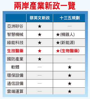 台灣研發力、醫療水準 國際肯定為什麼新政府會將「生技醫藥」列為未來重點發展產業之一?除了這是受到全球關注並積極投入的重點項目之外,台灣更是具有多項發展生技醫藥產業的優勢。例如,台灣的研發能力及醫療水準在國際間是受到肯定的,專業的醫療團隊及完善的設施設備,都足以支持新藥的臨床試驗。而且,台灣比鄰近先進國家更早投入生技醫藥研發的領域,已經建立了研發的基礎,再加上研發成本也比較低,更具有發展生技醫藥產業的優勢。除此之外,我國的農業技術也十分先進,有助於農業生技產業的發展。新興國家在經濟成長、生活水準提高的情況下,醫療照護的需求也隨之提升,為生技醫療產業帶來商機。尤其華人人口眾多,足跡遍及全球,台灣應該以目前所擁有的優勢,把握機會,針對華人特有疾病進行研究、開發新藥,掌握龐大的華人醫療商機。