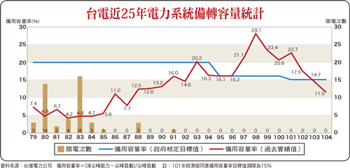 氣候變遷日益嚴重,地球百年來的氣溫變化,因為人類各項工業活動及日常生活所產生的二氧化碳排放量大幅增加,造成地球日漸嚴重的大氣及海水暖化現象,加速氣溫大幅度升溫,台灣也無法置身事外。氣溫不斷升高 用電量屢創紀錄台灣年平均溫度在百年之內總計大約上升攝氏一.四度(均溫為攝氏一八.四三度),為同期間全球平均氣溫增溫速率二倍以上(均氣溫為攝氏一三.九度,平均增溫速率為攝氏○.六度)。同時,今年六月以來,更是台灣設立氣象觀測站一一九年來平均氣溫最高的一段時間。根據台電用電統計資料指出,台灣史上最高用電紀錄前十名,有八次出現在今年六、七月份,用電量驚人爆表。備轉容量不足 限電警戒頻率衝高台灣年平均氣溫百年來飛快升溫的結果,民眾使用冷氣的頻率也跟著快速拉高,大幅增加電力需求。然而,台電公司供電能力的成長速度、用電備轉容量的餘裕空間,過去二十多年來,已明顯跟不上民間電力消耗成長速度。近年來,時可聽聞有識之士的分析、預判,台灣恐將因「限電警戒」紅燈頻閃,持續高頻率地引發限電危機,最終可能將大規模影響民眾的日常生活,商業活動無法正常運轉。