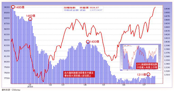 資金行情引爆今年台股除權息行情,跌破主張棄息重量級股市名嘴的眼鏡!首先由外資主導台積電在國內外利空紛擾下強勢填息,拉開比價空間;重量級權值股台達電半小時填息、儒鴻一小時填息都震撼市場。但可惜的是在外資熱錢簇擁下,大盤強登九千點,但代表散戶指標的融資餘額卻徘徊低檔,顯示權值股除息填息行情都是法人天下,散戶沒有跟上,只有OTC的融資餘額有跟上行情。目前台股整體平均現金