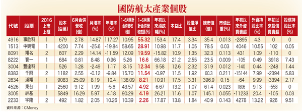 近期在全球掀起狂熱的任天堂「精靈寶可夢GO(Pokemon GO)」,讓向來於尋找投資機會具備高敏感度的金融投資界難得好好發揮了一下,「精靈寶可夢GO概念股」股價跟著競相表態。搶賺短線熱門股 小心被套牢然而,所謂的「精靈寶可夢GO概念股」,絕大多數都未直接與精靈寶可夢建立起上下游供應鏈關係,根本未實質獲得接單,投資人一窩蜂搶買,很有可能會買在缺乏實質基本面支撐的高點,成為最後一隻老鼠。而在市場投資目光關注著寶可夢Go概念股之際,忽略了其他具備實質長線持續性發展利多,成長力相當長的明日之星產業,如:「國防航太、電動車、汽車電子、雲端及大數據概念、生技製藥、醫療耗材」等,這些「市場遺珠」因為缺乏投資人關愛眼神,股價相繼回檔修正時,卻是識貨的投資人趁機進場大撿便宜貨的時機!根據航太工業龍頭漢翔(2634)的調查報告預估指出,台灣航太產業產值將自二○一五年的九一五億元新台幣,至二○二○年大幅倍增至二千億元。航太目前已成為政府積極整合推動的五大創新研發計畫中,振興台灣國防的輔導重心之一,在漢翔主導下,台灣航太產業「A-Team 4.0」菁英廠部隊順利成軍。依據漢翔預估,全球航空產業市場總產值亦將於二○二○年持續成長高達一.六七兆美元,對台灣現有幾家已具備跨足國際航太工業市場,可與國際廠家同場競技的航太工業族群而言,可說即將迎來推動後續營收成長上升氣流,可望交出營運佳績。