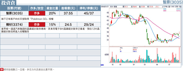 國發會公布六月景氣對策燈號,雖然受到外銷接單連十五黑的影響,維持現行的黃藍燈狀態,不過,隨著下半年多數產業傳統旺季來臨,第三季外銷訂單有機會由負轉正,預期景氣可暫時擺脫低潮期。相對的,台股由八千點開始起漲,漲到近期相對高點,才出現景氣開始復甦。由此發現,金融市場可提早半年知道復甦的到來,但股價早已提前反映。當媒體開始樂觀時,投資人應謹慎看待。日本任天堂推出的手機遊戲精靈寶可夢GO(Pokemon GO)創造話題,市場傳出,IC設計服務暨矽智財(IP)供應商智原(3035)旗下已有客戶向任天堂取得Pokemon GO授權,並發展周邊配件,讓智原間接切入相關供應鏈,搶食Pokemon GO商機。近來成為熱門話題的AR(擴增實境)手機遊戲「Pokemon GO」,因為屬於軟體類的遊戲,硬體端的台廠受惠程度相對有限。由於玩「Pokemon GO」會造成手機耗電,以及麥當勞推出周邊玩具,因此目前僅行動電源晶片廠和玩具IC廠被點名可能有機會受惠。