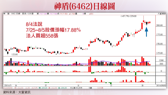 台股近期仍是熱錢充斥,外資匯入金額六、七月連續兩個月皆大量流入,累計外資淨匯入資金已高達二○六○億美元,超過六.五兆元新台幣,創下史上新高。因此,現階段資金派對仍有望續攤狂歡,大盤後市不排除有機會續創波段新高。資金派對持續 個股藉法說會造勢也因為市場交投氣氛目前看來似乎仍對多方有利,有助推升大盤進一步挑戰上檔最近一道整數反壓大關─九二○○點。自八月份以來,多檔已召開法人說明會、業績發表會的個股,股價陸續出現短線亮眼漲勢,看來多方仍未放棄此一難得有望持續主導台股後市走向的絕佳機會,正持續點名適合「運作」標的,上演股價短線急漲走勢精彩大戲。其中,幾檔已舉辦過公告七月營收表現、半年報成果的個股,不乏憑藉著基本面、籌碼面、技術面等利多,在四、五個交易日內,股價即大漲最高達二成以上;同期間,二位數以上漲幅表現個股亦所在多有。在近期單日盤中、短線股價大漲,法說會已舉辦完畢個股中,不乏因為技術面出現均線糾結,有利漲勢發動訊號,買盤爭先卡位力道下,短線漲勢亮眼,如:上緯(4733)。同時,亦不乏見到法人連續數個交易日以上買超,具備籌碼穩定度拉高,由外資、投信點火,推升短期股價出現精彩漲勢者,如:神盾(6462)。基本面、籌碼面、技術面競豔 個股輪流表態上漲另一方面,同樣也於法說會上發表半年報,釋出產業基本面中長線利多,以及營運展望樂觀以待,有機會逐季成長之看法個股,如:新麥(1580)、圓展(3669)、精測(6510)等,也依循同樣的漲升模式,短短幾個交易日內股價呈現出令人驚豔的亮麗漲勢。預定八月中、下旬召開法說會、業績發表會個股中,同樣具備股價技術面均線糾結,臨近橫盤整理箱型區間末端,有可能走出波段漲勢標的有:亞德客-KY(1590)、華碩(2357)等。有望跟上本波法說會行情 新標的值得投資人關注就具備有利推動股價漲勢之籌碼面優勢而言,即將召開法說會、業績發表會個股之中,已見到法人短期間連續數個交易日積極買超,具備較高籌碼穩定度者有:富邦金(2881)、國泰金(2882)、第一金(2892)、和碩(4938)等。
