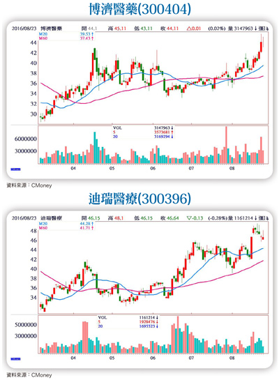政策加持 醫藥板塊具長線商機中國近年致力於產業結構轉型,帶動新經濟概念相關等產業持續高速增長,伴隨「深港通」年底開通,投資主軸仍應聚焦新經濟,瞄準長期成長題材。其中最不受全球景氣影響板塊就是醫藥行業。中國國務院日前印發《十三五國家科技創新規劃》作為首份科技創新規劃,對未來五年的科技創新提出了綱領性意見,點亮了醫藥健康領域的投資發展方向。首先就是加快新藥創製,其內容指出強化創新平台的資源分享和開放服務,基本建成具有世界先進水準的國家藥物創新體系,新藥研發的綜合能力和整體水準進入國際先進行列,加速推進由醫藥大國向醫藥強國轉變。我們可以合理的預期,在自主創新的戰略背景下,藥品研發過程中對於前期安全性和有效性的檢驗需求將大幅增加,直接促進了臨床前CRO行業近年來的持續增長,投資人可將博濟醫藥(300404)、亞太藥業(002370)、泰格醫藥(300347)等列入長線追蹤口袋名單。其次,體外診斷產品也將迎來快速的發展。在官方的規劃內容裡,有提出突破微流控晶片、單分子檢測、自動化核酸檢測等關鍵技術、開發全自動核酸檢測系統、高通量液相懸浮晶片、醫用生物質譜儀、快速病理診斷系統等重大產品,皆是政策獎勵的方向。而開發重大疾病早期診斷和精確治療診斷試劑以及適合基層醫療機構的高精度診斷產品,則是另一重點關注板塊,其將提升中國體外診斷產業競爭力。前述直接關聯之標的有博暉創新(300318)、邁克生物(300463)、迪瑞醫療(300396)、潤達醫療(603108)、美康生物(300439)、九強生物(300406)等公司。另外,推動加強傳染病防治,注重疫苗研發。《規劃》裡指出,支持研發愛滋病、B肝、肺結核診防治關鍵技術,加強疫苗研究,研發先進檢測診斷產品,形成中醫藥特色治療方案。預計中國疫苗增長到二○二○年疫苗市場規模將達到三十.九億美元。投資人可關注疫苗生產廠商,如華蘭生物(002007)、智飛生物(300122)等。