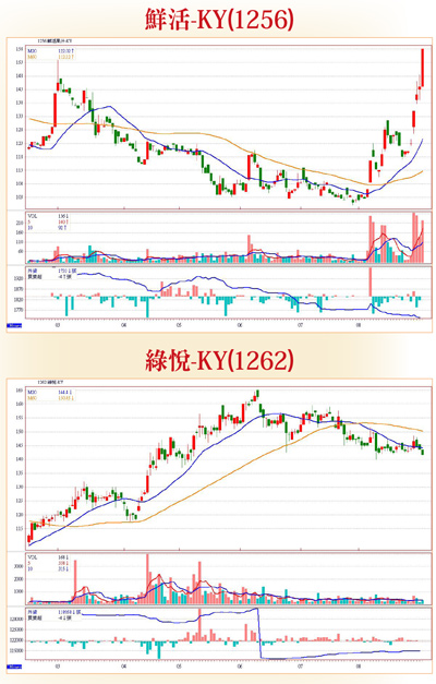 綠悅-KY上半年賺五.七一元受到電子股尚未轉強的情況下,本週理周投研部為讀者朋友持續推薦二檔非電子族群的優質標的。綠悅-KY(1262)主要業務為雙向拉伸尼龍薄膜(BOPA)之研發、生產及銷售,七月營收創下新高達五.九一億元,已經連續三個月創下新高水準。目前產線產能利用率已達九成以上,八月份產能利用率將達滿載,可望帶動二?一六年下半年營收再創高。而產線滿載時亦將帶動毛利率的攀升,因此下半年毛利率亦可望再登頂。上半年每股盈餘為五.七一元,下半年在產能滿載的帶動下,獲利將較上半年成長一成以上。且根據研究機構中國塑模網之研究數據顯示,明年BOPA供應將持續短缺超過五萬噸,營收動能將不虞匱乏。鮮活-KY加工果汁成長快若以明年獲利角度來看,目前股價僅在十倍本益比水準,在獲利穩健成長的態勢上,評價已明顯低估,未來股價將可望出現亮眼表現。鮮活-KY(1256)為中國專業加工果汁製造商,主要產品為果汁、果粒以及果粉等。七月營收創歷史新高為二.八七億元,展望八、九月份,此兩月份為夏季飲料旺季,且目前旗下三廠仍持續加班生產的狀態,營收可望維持於高水準的表現。鮮活主要市場為中國市場,中國目前人均果汁消費量每年僅二公升,遠低於全球平均的七公升,未來隨著健康意識崛起,消費者對於飲料選擇偏好逐漸傾向於具有實際營養價值的果汁類飲料,明年隨著產能利用率的提升、新廠效益完整發揮與產品組合優化,貢獻獲利將更甚於營收成長性,未來各季度獲利都有機會出現持續創高的水準,股價亦將隨獲利攀升。
