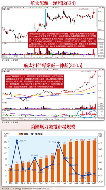 共同支持產業 未來發展如虎添翼在兩位選候人政見中,與台廠上市櫃公司高度相關的產業,主要有:候選人為打擊定價不合理新藥、學名藥製藥公司,所提出抑制、平抑藥價作法的政見,可能受拖累的「生技製藥業」;以及為確保美國勞工利益,主張反對成立TPP(泛太平洋戰略經濟夥伴協定),確定將因此受重創,原本市場預期的「TPP受惠產業」─紡織、成衣、製鞋等。建議隨著美國新任總統出線時間日益逼近下,應先避開前述幾項幾可確定將失去前進美國市場的產業,以免不論是川普或希拉蕊當選,其後政策性調整及管制,以及新一輪經濟產業發展藍圖及相關規範,對台廠帶來的緊箍咒。另一方面,在川普、希拉蕊的經濟發展相關競選政見中,所共同支持、齊一口徑主張的施政及資源配置重心,後續可望因而受惠的台廠相關產業,主要有「國防航太」、「風力發電」等。最主要的原因即在於,川普及希拉蕊皆認為「美國國防強化政策」、「全球其他地區的盟邦國防安全」兩項重要施政重點項目,須切實落實自主化、獨立化、負責任化的預算編列的往來互惠公平原則,不應該再像以前一樣,總是要美國自行負擔各項區域維安、國防安全等重要任務的開銷(美國二○○八~二○一五年每年國防預算支出均高達六千億美元以上),其他國家也應該以獨立、負責任的態度,善盡一己之力,與美國共同協力維護區域、國家的和平及安全。可想而知,因為美國出面喊話、嚴正聲明下,包含:中東回教國家,南韓、日本、台灣、菲律賓、泰國、馬來西亞、新加坡,甚至是北約各會員盟國,有可能大幅增加國防預算支出,因而衍生的龐大商機,整體年產值動輒高達數千億美元以上。且全球過去十五年來,所有國家年度國防預算合計均高達一兆美元以上(二○○九~二○一五年每年更高達一.七兆美元以上)的驚人規模;同時,據國內廠商的調查統計資料指出,全球航空產業未來將持續成長於二○二○年時達一.六七兆美元規模。如此一來,勢必將可進一步為向來於「國防航太」領域耕耘已久的相關族群,如:漢翔(2634)、神基(3005)、晟田(4541)、寶一(8222)、千附(8383)等個股,帶來推升營運動能的強大上升氣流。除了國防航太產業後續可能因兩位候選人均主張增加國防、軍事預算支出而受惠,能源政策方面,因為川普、希拉蕊均主張擴大應用美國境內再生能源,新潔淨能源政策嘉惠產業中又以風力發電最符合雙方政見交集。