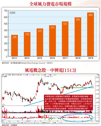 美國潔淨能源政策交集點 風力發電前景看俏根據美國U.S. Energy Information Administration(EIA)產業及市場調查結果指出,全美風力發電量總規模,預計將可自今年的80GW,持續穩定成長至二○二五年的144GW,預料對台股「風力發電」重要關鍵零組件供應鏈,如:東元(1504)、中興電(1513)、華城(1519)、永冠-KY(1589)、上緯(3708)、世紀鋼(9958)等而言,將有很大機會打入美國,為營運再注入強勁推升力道。隨著風力發電持續擴大,發電量成長驚人,預計將自今年的474GW,成長達二○一九年的666GW,前述幾檔有望打入美國風力發電系統重要零組件供應鏈市場的族群股,後市更有機會挾著成功進軍美國的優越表現,攻入其他市場。
