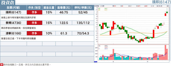 由於韓國晶圓代工廠東部高科近期在電視驅動晶片面臨製程問題,導致面板廠將部分電視驅動晶片(DDI)的訂單轉給台灣的供應鏈,世界先進(5347)以及頎邦(6147)將是主要受惠者。其中,頎邦為利基型的半導體封裝與測試服務供應商,主要業務為提供顯示器驅動晶片後段封裝及測試代工服務,驅動晶片封裝包括前段之金凸塊(gold-bump)製程與後段的TCP、COG封裝及覆晶封裝並包括前段的錫鉛凸塊製作,目前為全球最大驅動晶片封裝廠。由於4K2K電視在上半年鋪貨需求後,電視驅動晶片需求仍十分強勁,有助產品出貨動能延續到年底。另因功率放大器(PA)後段封裝技術趨勢,將由傳統的打線(WB)/系統封裝(SiP)轉為金凸塊/覆晶(FC)封裝,將促使功率放大器IDM廠外包業務,身為全球最大的金凸塊供應商的頎邦,除了成本優勢領先同業外,又具現有閒置產能,將是此趨勢下的最大受惠者。基於電視及智慧型手機面板驅動晶片需求將延續至第四季,下半年功率放大器及觸控面板驅動晶片業務增長,加上東部高科生產遭遇瓶頸可望擴大頎邦其市佔,券商已紛紛上修今明兩年的獲利預估,並將評等調升至買進,激勵股價帶量跳空大漲突破年線反壓,多頭強勢表態意味濃厚。再從法人籌碼觀察,可發現投信及外資雙雙開始回補,且買超力道也有擴大的跡象,顯示營運成長故事已獲得認同,預期股價近日在年線附近震盪消化賣壓後,就可展開新一波多頭的漲升行情。
