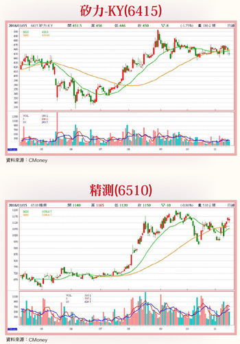 美國總統大選結束後,資本市場終於去除系統性干擾利空陰影,再度回歸由景氣循環榮枯、經濟成長率高低所主導盤勢走向的根本主軸。也由於市場重大干擾因素已順利解除,盤面開始出現多檔明顯獲得市場主力「青睞、關愛眼神」買盤所加持個股,藉著題材面利多效應的加持,股價因而得以見到出乎意料之外、與眾不同的精彩亮眼漲勢。預料後市於市場短暫「西線無戰事」氛圍下,盤面獲得主力青睞的中小型股,股價後續仍有機會上演連續性漲升戲碼。產業基本面前景展望透明度高、財報實績表現亮眼、營收成長動能轉強,外資、投信爭搶卡位、市場籌碼穩定度拉高,股價有望見到波段漲勢鏢股者:豪展(4735)、矽力-KY(6415)、精測(6510)等個股。豪展營收財報表現亮眼豪展(4735)-台灣生技及居家護理健康儀器大廠,公告十月營收一.五一億元,月增率五六.七九%,年增率六四.五四%;累計一~十月營收總額達八.八億元,年增率八.四一%。豪展公告第三季營收三.○二億元,年增率一五.三%,單季稅後淨利為○.二七億元,EPS為○.八元,與去年同期相比下,成長達三.八九%。前三季合併稅後淨利○.四九億元,年增率一六.七一%,累計EPS達一.四五元。展望第四季營運前景,豪展表示,日系客戶原先預定推出五款血壓計系列產品,於十月份已集中、大量出貨多達將近一萬台;加上九月份遞延訂單、標案營收挹注下,豪展十月營收達一.五一億元,月增率高達五六.七九%,年增率亦多達六四.五四%,表現十分亮眼,料將帶旺後續第四季營收表現,預估將有望交出三億元以上佳績,全年營收也應可順利衝過十一億元大關。展望明年營運後市,市場法人預期日系廠客戶血壓計訂單,應可再挹注豪展達六千萬左右營收;同時,豪展仍將繼續爭取大型金額標案到手,法人持續看好豪展明年營收成功挑戰十二億元大關機會大。市場法人預估明(二○一七)年營收年增率約一一%左右,全年營收預估可達十二.六億元以上,全年EPS約三.四七元。
