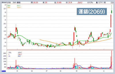 近期美國十年期公債殖利率已經攀升到二.一五%,意味債券價格也跌得鼻青臉腫。而德國十年期公債殖利率也由負轉正,顯示市場游資過多的現象,已經在美國升息預期情況下。市場環境以及結構有明顯的改變。中小型股率先落底 關注後續利多之前外資連續買超將台股推向九三九九點左右,進入十一月後,外資最近都加大賣超的金額,研判外資匯出可能在二十億美元左右,也影響台股震盪走弱的行情。而美國當選人川普的政策不斷發酵,科技業恐面臨重返美國製造及高進口關稅威脅的隱憂,營運恐將受到衝擊,電子股成為近日的重災區,相關概念股以權值股台積電和大立光為代表,不過中小型股已經率先進入跌勢,注意後勢打底機會。而市場預期川普對金融股有釋出有利政策,短期有利金融股。川普也將進行基礎建設,中國也努力去產能,剛好一拍即合,可以將供需邁向平衡。台股剛好由於這次外資撤出資金的動作,導致大型權值股順勢拉回,剛好投資人可以等待刀子落地後,布局再一次大幅回檔的買點契機。運錩子公司明年投產 將挹注新的成長動能運錩(2069)屬於不銹鋼專業加工製造廠,營運主要分為台灣運錩裁剪加工中心,與大陸奇億不銹鋼精密冷軋廠,台灣廠約佔營收六成,主要從事三○○系不銹鋼裁剪加工銷售,大陸廠則從事高精密不銹鋼冷軋生產與銷售,產品主力為四○○系不銹鋼,價格較不受鎳價影響營運相對穩定,產品主要應用於家電、電子零組件、電池環保能源、汽車等產業。其大陸子公司寧波奇億金屬,明年第四季投產,完工後產能可較目前提升約一.五到二倍,解決子公司接單滿載產能不足的困境,並為運錩注入一股新的成長動能。