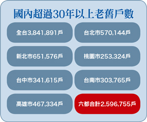 有鑑近期川普當選美國總統,英國脫歐亦已箭在弦上,面對全球保護主義興起,兩岸關係尚未解凍,再加上中國經濟「硬著陸」風險之層層隱憂,雖然行政院主計總處於十一月二十五日發布最新經濟預測,將今年全年經濟成長上修到一.三五%,預計明年也可達到一.八七%,顯示景氣正朝緩步復甦方向邁進,惟仍屬於「溫和成長」。新政府在積極振興經濟之政策前提下,蔡英文總統日前拍板,擬透過老舊住宅更新來帶動國內內需市場,要求行政部門月底前提出規畫方案,對於安全堪慮的老舊住宅,給予足夠的容積誘因,並鼓勵公股行庫和金融機構積極參與;旋而,行政立法協調會報亦積極討論《都市更新條例》修正案,為加速推動都更,一致同意下會期提出修正案,從而減稅和提高獎勵隨即躍為推動誘因主軸。您如何評估加速都更成效與房市後續榮枯?就此次蔡總統提出都更救經濟政策而言,根據依行政院發言人所述,這次都更條例修正幅度很大,將大幅提升財務可行性、擴大稅捐減免,其中協議合建都更案也擬比照權利變換,祭出土地增值稅、契稅等租稅減免誘因。此外,行政立法協調會報更積極討論《都市更新條例》修正案,為加速推動都更起見,一致同意儘速於下會期提出修正案。內政部更提出將都更後首次移轉前,房屋稅及地價稅一律減半等建議。一石二鳥策略正確目前國內超過三十年的老舊公寓住宅,約有十四萬棟,超過百萬戶,其中雙北就有近十萬棟,其他都會區數量也相當龐大(參見附表),這些老舊公寓住宅,普遍存在公共設施不足、公共空間缺乏等居住環境窳陋問題。此外,根據推估,適用八十八年以前耐震規範的老舊公寓住宅中,還有五萬餘棟有建物耐震安全疑慮,急需補強或重建(參見圖一),蔡總統表示,這些問題關係到許多國人的居住品質與安全,是現階段政府必須優先規劃推動的重大政策;其次,她清楚理解當前老舊公寓住宅的更新,確實面臨了一些法令面與實務執行面的瓶頸與障礙,導致過去的更新工作成效無法彰顯,其因在於激勵誘因不足、資金不夠與整合不易等三個層面。