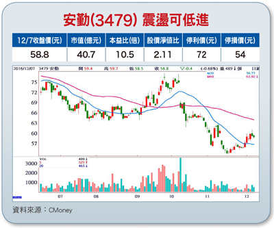安勤(3479)是仁寶旗下IPC工業電腦供應商,產品營收比重為嵌入式電腦三六%、工業用電腦六○%、其他四%,主要應用於教育娛樂、醫療、工業控制、車載電腦、博弈、互動多媒體機台等。隨物聯網技術成熟與智慧化熱潮,工業電腦應用更廣泛,如智慧生產、智慧倉儲、智慧醫院、智慧農場、智慧零售等。展望第四季,營收雖會因美國投票機、歐洲POS與日本mPOS平板訂單往後遞延而趨淡,但訂單遞延非消失,明(二○一七)年第一季反而有機會不淡。安勤七月宣布與微軟、仁寶合作,將物聯網擴展至零售業市場,透過微軟Azure雲協助店家即時查詢和庫存管控,掌握最新銷售報表與商情分析。九月推出電動醫療推車Geni-Cart,用於提升醫護人員照顧病患之效率,並取得荷蘭西北阿爾克馬爾醫療集團訂單。安勤在美國市占約二八%,其中美國子公司BCM貢獻最大(七成以上),連年為安勤奪得POS、醫療及博弈訂單,並在美國最大博弈展G2E中,秀出安勤與仁寶九月才開發出的平板新品。此強固型平板新產品將通吃博弈、零售兩大市場,安勤計畫先由吃角子老虎機、博弈顯示器應用,然後擴大到結合博弈、零售雙應用項目,以創造新的市場及取得新商機,未來成長潛力值得期待。