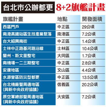 都更漫漫長路曠日廢時以名聞遐邇的重大都更案,歷時近三十年,位於台北捷運忠孝復興站旁「正義國宅」為例,該案原住戶持地總比重約六一%、國產署占三七%、北市府占○.六%,合計政府公家單位占比超過三八%,然在前端整合過程卻是困難重重;三年前經台北市審議委員會通過,當時市長郝龍斌還曾共同主持開工典禮,惟目前仍停留在權利變換階段,並未真正動工,其間還歷經建商換手,以及都更戶遭槍殺事件,可說波折不斷,由此顯見利益分配的確潛藏不少困難。另外,位於新莊最熱鬧繁華街口的「泰舍至善元」都更案,最近也已成為房市焦點,預計在明年初取得建照,推出總銷二百餘億元,基地近三千坪,也是名列前茅的自辦都更案,實施者表示,只花二年就一○○%整合一百四十五位地主,速度之快雖為業界稱羨,惟未至權利變換完成,恐亦言之過早。今年初台北市政府宣布二○一六年為台北市「公辦都更元年」,公布「台北市公辦都更八+二旗艦計畫」(詳見附表二)及《台北市公辦都市更新實施辦法》草案;旗艦計畫包括先前公布的「南機場整宅」、「蘭州、斯文里整宅」等,新確定的則是中正區水源營區、士林中正路基河路沿線;另外兩案「台北機廠」、「原空軍總部」將由市府與中央政府協議。市府預期將協助三千八百戶住戶都市更新,提供四十七萬坪產業用地,預估引入約二千五百億元政府及民間投資金額,每年可提供約二萬八千人就業機會,並且市府可取得約五千四百戶公共住宅。惟截至目前為止,幾無績效可言,此可由臺大紹興南街以及市議會舊址公辦都更均告五度流標見其一斑。至於未來公辦都更如何推動並成為示範案例,則仍有待時間考驗。