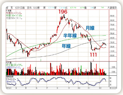 散熱模組大廠超眾(6230),今年營運、獲利都有機會再創歷史新高,是今年經濟成長率保一%下少數仍大放異彩者。手機走向高效能及輕薄,對於散熱模組的要求條件及需求更高,超眾的毛利率由二○一一年第二季一三.九六%,連續五年提升到今年第二季二九.二二%,帶動獲利連續五年成長。二○一五年EPS七.七七元創下歷史新高,今年營收前十一個月六六.八三億,年增二三.五%,十二月又是出貨旺季,估計今年全年營收將達七三.五億,年增二一.六%,再創歷史新高。超眾今年前三季EPS七.七二元已平去年獲利,第四季營收估十九.二七億,季增三.六%,將推升獲利全年達一個資本額,再創歷史新高。超眾股價今年一度漲到一九六元,近三個月大幅回檔至一一一元,本益比由十九倍降至十一倍,近一個月處於一一五~一三三元築底走勢,目前月線一二一.五元,以十二月二十日收盤一二五.五元已站上月線,短線轉強,中期上檔壓力於半年線一四八及年線一三八元,未來若能夠站上才是長線多頭的開始。週線指標KD目前在超賣區形成向上的黃金交叉(29,23),是中期走勢轉強的訊號。超眾屬於小型股,股本八.六三億,而董監事及大股東持股高達四二%,具籌碼優勢,很容易炒作,加上今年獲利可達一個資本額的利多,常為法人鎖定的焦點。近期股價壓回月線一二一元,是底部參考位置。