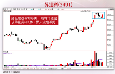 眾達-KY現階段兩大出貨主力產品為:應用於「資料處理中心(Data center)」之一○Gbps以上「高速光收發模組」,以及應用於日本電信基礎建設所需「4G LTE Advanced光收發模組」。也因為中國、北美、日本三地市場,去年皆同步維持原本成長動能水準,使得眾達-KY去年整體出貨量續創新高,順利帶動眾達-KY營收持續成長向上。眾達-KY表示,因目前在手訂單能見度高,除去年第四季為全年度營運表現最好一季外,同時預估今年各季營收業績,亦不會低於去年第四季水準。市場法人預期,除眾達第四季營收業績成功創下歷史新高外,今年度整體營收亦可望順利續創新高紀錄,且全年業績也將有望維持原本二位數營收成長力道。法人機構預估眾達-KY今年全年營收可持續成長達二一.六七億元,年增率為一一.九三%,全年EPS為六.一六元。以一月十八日收盤價計算,目前本益比約十四.二倍。微波高頻通訊濾波器、雙工器、天線及其他被動元件,設計、研發、產銷廠昇達科(3491),股本五.一六億元,二○○八年一月掛牌上櫃,主要產品別、營收占比分別為:微波元件五一.六五%、天線二二.八五%、其他一五.七四%、射頻元件九.七六%。昇達科公告去年十二月營收一.四六億元,續創歷史新高,月增六%,年增二四.一六%;累計去年全年營收達一五.一六億元,年增六.五六%。昇達科單季EPS挑戰一.五元 法人估今年EPS五.六三元昇達科去年十月營收已重新見到成長動能,達一.二六億元,十一月營收一.三七億元,又較十月增加達二○%左右。法人推估,如果十一、十二月毛利率可以順利維持十月份四○.三%水準,加計業外匯兌收益挹注下,昇達科第四季EPS有機會成長達一.五元水準,推估全年合計EPS應可望達四.二~四.三元左右。受惠以色列客戶Ceragon,於印度電信公司微波台、基地台應用微波元件市場拉貨需求,集中於年底下單緣故,昇達科去年十二月營收優於十一月水準、續創歷史新高,第四季合併營收創新高。展望今年第一季營運,昇達科旗下「微波元件及無線天線製造」子公司─芮特(6514)進入傳統營運淡季,公司評估單季合併營收表現將趨淡。法人機構推估,昇達科今年首季營收將季減約五~一○%左右;第二季開始,整體營運表現即可逐步回溫。有關產品結構、毛利率變化方面,去年十、十一月份昇達科微波通訊產品營收占整體比重達五五%,較去年第三季時五二%水準進一步拉高;加上十二月營收最大成長動能,仍舊以微波通訊應用相關產品為主,第四季微波元件營收占比因此可望持續高於前一季;市場法人預期將可因此帶動毛利率持續成長走高。