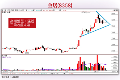 昇達科表示,由目前所掌握美國、日本等先進國家,後續電信基礎建設施行、布建進度評估,預估明(二○一八)年後,下一世代5G通訊規格將有機會開始進行大規模商業運轉,預料可為昇達科帶來後續無線通訊相關應用元件市場出貨商機,挹注營收成長動能。法人機構預估昇達科今年全年營收可持續成長達一七.三億元,年增率成長一四.一二%,全年EPS為五.六三元。以一月十八日收盤價計算,目前本益比約十二.八倍。銅箔供不應求 金居本益比八.六倍銅箔基板原材料廠金居(8358),隸屬光寶集團,股本二一.○六億元,二○一○年九月掛牌上櫃,主要產品別、營收占比分別為:銅箔九九.六六%、其他○.三四%。金居公告去年十二月營收為五.五億元,月增率五.六八%,年增率大幅成長達五二.四一%;累計去年全年營收達五三.六五億元,年增率為二五.七九%。由於銅箔市場供需目前仍持續供不應求、供需態勢仍舊吃緊,金居因此於去年第四季再度調漲銅箔代工費用;法人機構預估,單季獲利達一元以上機會大,可望續創單季歷史新高記錄。