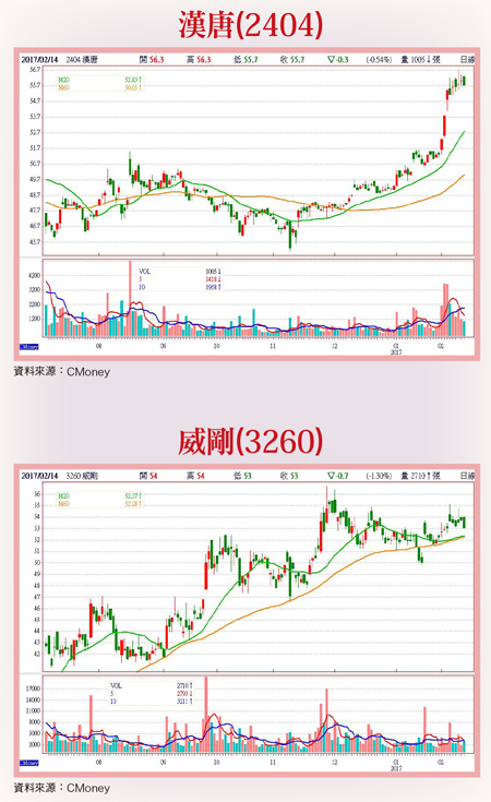 由於歐美股市主要指數,目前因德國去年貿易順差成功創歷史新高,以及美股投資人仍樂觀期待,川普總統後續施行稅改新政對股市激勵效果,成功維持市場信心續達一定強度下,因此持續呈現偏多格局;加上台股市場資金活水仍繼續量增、灌頂下,成交量明顯擴增達千億元以上,大盤亦持續偏多熱絡氣氛。新光鋼財報表現佳 基礎建設帶動鋼材快速消化本週理周投研部精選財報表現成果佳、營收獲利成長動能強,產業基本面前景展望透明度高、營收成長動能有望轉強,外資及投信法人搶著卡位,市場籌碼穩定度進一步拉高,股價後市有望走出波段漲勢鏢股者:新光鋼(2031)、漢唐(2404)、威剛(3260)等個股。新光鋼(2031):台灣鋼板、熱軋鋼板、型鋼、不鏽鋼大廠,公告今年一月合併營收六.六四億元,月減七.七八%,年增率多達四五.一三%。新光鋼指出,美國新總統川普上任後,一心貫徹大量基礎建設施政承諾與目標,不僅可大為助益美國整體建設發展前景持續好轉,同時也將因為各式大型基礎建設會消耗大量鋼鐵、有助鋼材存貨快速去化,自然可為整體鋼鐵市場帶來很大程度的正面幫助。另外,有關台灣國內鋼鐵整體市場需求方面,政府目前正持續規畫多項公共建設方案,預計第二季至第三季期間,即將陸續發包開標,後市亦可望因此強勢帶動台灣鋼材市場,需求力道大幅增強,有助包含新光鋼在內台灣各家鋼鐵廠後市營運。法人機構預估新光鋼今年全年營收年增率約四.八九%,營收總額約可達七二億元左右,全年EPS可進一步成長達一.八四元左右。漢唐(2404):台灣半導體、光電業無塵室工程及設備大廠,公告今年一月合併營收一四.八九億元,月增率負一一.四三%,年增率二.二一%。