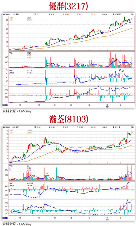 短期市場干擾因素聚焦匯率美國總統川普的貿易政策始終讓全球忐忑不安,尤其是亞洲國家。川普上任後隨即宣布美國退出跨太平洋夥伴協議(TPP),已令亞太各國出口業備感吃力。目前又準備對貿易順差金額大的國家,冠上匯率操縱的罪名,讓貿易保護政策師出有名。近期新台幣強力升值,卻少見央行買匯動作,是否忌諱美方的壓力不得而知。日前外電報導,川普智囊團正在研議更改計算美國貿易赤字的統計方法,將進一步膨脹貿易赤字。貿易赤字數字擴大,一方面可強化川普政府貿易協定需重談的論點,同時也可能為其爭取到課徵關稅的政治支持。例如從海外進口至美國,在未經加工就轉銷至加拿大或墨西哥的商品,排除在出口的統計類別。此一方法將使貿易赤字進一步膨脹,因為這類商品一開始在輸入美國時已計入進口,但是轉出口時卻不算在出口項目。美國去年對墨西哥有六三一億美元的貿易赤字,若採用新方法,則逆差可能膨脹快一倍至一一五四億美元。貿易收支帳目前是美國國會緊盯的數據,也是當下美國政壇熱議的焦點,對亞洲諸國相當不利,保護主義抬頭勢必對亞洲經濟帶來風險,尤其是韓國、台灣、中國等貿易導向的亞太經濟體。目前更無法逃避的是:第一季上市櫃公司匯損災情擴大的問題。美國雖欲指控中國、日本操縱匯率,但還未採取行動;而台灣為了避免遭到川普政府盯上,卻領先成為全球超強貨幣。統計今年以來,新台幣兌美元累計上漲五.三%,自去年十一月初美國總統大選日以來,新台幣的表現也都強於歐元、日圓。強勢的新台幣將加快紅色供應鏈取代台廠的速度,不得不留意。營益率轉佳為基礎 尋找低基期個股IMF估計今年世界貿易量的增長已由一.九%提高至三.八%,主計總處因此將我國今年海關出口成長率由四.九五%大幅調升至八.五%,經濟成長率因此同步由一.八七%上修至一.九二%。截至目前為止,外銷訂單也維持年增率正向成長之慣性,這樣的環境背景要尋找明顯成長的公司,相對較為容易。在兼顧市場風險之下,以營益率轉佳,股價基期不高的個股,相對容易吸引市場資金關注。優群 本益比不到十倍例如優群(3217),為NB連接器生產廠商,二○一六年產品比重,DDR連接器占五六%、M2+Mini-PCI連接器佔約二七%、RF連接器占比約一○%、高頻寬Type-C連接器一%。根據研調機構顯示DDR4滲透率將會從二○一六年的三○%提升至二○一七年的四○~六○%,從優群去年第三季毛利率可觀察到因DDR4滲透率提高,毛利率從第二季的三二.四%跳到三八.七%。Type-C部分受惠於美系新款筆電導入,將促使Type-C於NB產品的滲透率,從二○一六年的五%提升至二○一七年的二○%,高頻傳輸Type-C領域之獲利與營收規模將同步放大。其他產品線M.2/Mini -PCIe、RF等也皆朝向高速傳輸方向邁進。法人估營益率將從二○一六年的一四.一二%跳升至二○%,預估今年EPS約三.一元,對照截稿前的股價二十八元,本益比不高。瀚荃 去年營益率逐季提升第二個例子瀚荃(8103),主要產品連接器占五六.七%、軟性排線連接器占二九.五%,終端應用包含光電、NB、工業、網通、車用等領域。產品組合:光電二二%、電腦周邊及網通二○%、工業+汽車二六%、消費電子及周邊七%、NB+手持(平板)二四%。今年將持續積極發展自有品牌O'PRO9及智能家居(Homekit)產品,改善產品組合。Type-c部分,公司亦持續開發中,未來將著重在發展利基型市場為主。車用產品持續認證中,預期二○一七年部分產品可望陸續通過認證,目前供應Tier2廠商,未來目標打入Tier1供應鏈。車用及工業用產品預估今年有兩位數成長,毛利率較高對獲利助益大,能提升整體營益率。去年一~三季的營益率分別為九.九七%、一三%、一五.七七%,持續明顯改善中。法人預估二○一七年EPS約三.五元,對照截稿前股價三二.六五元,本益比不高。