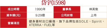 岱宇(1598)成立於一九九○年,以銷售健身器材為主,挾帶研發、生產、銷售到售服一條龍的優勢,主攻外銷市場,又以美國銷售比重達六六.二%為最大市場,核心產品包含心肺功能、輕量型及醫療復健輔助健身器材,依照不同訂價發展四大品牌,依價位高至低分別為Spirt、Sole、XTERRA及Fuel。主打高價市場 明確定位個別產品使用者岱宇清楚定位各類型使用者,Spirit主打專業使用及運動狂熱者,關注在使用產品品質及體驗者經驗,目前布局商用及專業零售市場;Sole則以運動愛好者為主要標的,該類消費者較重視產品的外觀高於該產品的性能;而主打平價品牌的XTERRA及Fuel以一般使用者為主,因此在功能面的設計也較為簡易,符合大眾市場需求。品牌當中,又以主打高價位的Sole及Spirit占營收比重較高,根據二○一六年財報,Sole及Spirit分別占營收四五.一七%、二一.三七%,Fuel、XTERRA僅占七%、三.二三%。岱宇目前握有SPIRIT、FUEL及XTERRA三個自有品牌及SOLE國際市場的經銷權。並於美國、加拿大、日本及中國大陸設有子公司,透過國際市場一百三十多家合作夥伴,掌握市場通路及經銷據點,以合作的方式在地化經營,互助支援,降低直接經營成本。布局全球最大健身器材市場 合作通路在美國總店數達七成根據調查,目前全球健身器材市場主要集中在美國,約佔全球市場逾六成以上。在需求方面,根據美國健身器材製造商協會統計,二○一四年全美健身器材市場規模達五十億美元,其中家用市場年成長四.七五%,商用市場年成長四.○六%。林英俊表示,透過各國經銷商,岱宇布局包含北美、歐洲及中國等健身器材通路,通路當中Dick’s、Academy、Costco及Sears在美國的總店數,涵蓋整體市場超過七成的市占率。進入美國市場的門檻在於IP的申請,「我們剛開始進入美國市場,也繳了幾百萬美元的罰單」,林英俊指出,也因此,岱宇注重在專利上的布局,在健身器材產品專利技術上共取得一九一項的專利權,包含發明、新型及新設計三類,同時申請中的專利數有三十五項,擁有九十項的商標權,在彰化三個廠中,約有十幾名機電、醫療相關的研發人才,為研發新產品的核心關鍵。