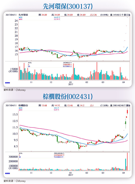 陸股資金面條件可望優於去年克強指數的另一指標發電量,同樣從去年六月以來開始穩步回升。今年前兩個月,中國發電量年增率達六.三%,日均發電量一五七.九萬千瓦時,年增率達八.一%,經濟谷底反彈的訊號明確。先前市場擔憂資金因匯率預期性貶值而持續外流,經過兩個月的觀察,負面影響已逐漸淡化。三月份中國外匯存底為三.○○九兆美元,較二月增加三九.六四億美元,為連續兩個月回升(二月增幅為六九.二億美元)。累計今年第一季,中國外匯存底規模下降十四億美元,較去年同期的降幅一千二百美元,已顯著縮小。至於市場討論的「陸股納入MSCI」,今年成功的機率是比去年大,過去A股三度闖關不成,原因不外乎流動性問題,例如QFII每月贖回金額不得超過上一年度淨資產二○%額度、停牌造成的亂象、金融產品在海外上市必須得到交易所審批等限制,都被MSCI視為阻礙。但近期MSCI針對A股納入全球指數提出新方案,包含將外資進出方式由合格境外機構投資者與人民幣合格境外機構投資者(QFII/RQFII),轉為借道滬港通與深港通,指數計算以離岸人民幣(CNH)為準,成分股數量也大幅縮減至一六九檔,相對等於降低門檻標準。今年滬港通及深港通已經上路,資金進出流動性及效率提升,等同在資本自由流通性有了重大進展。A股納入基準指數後,預期將吸引更多國際中長期投資資金進入中國市場,長期可望改善其市場結構及投資者結構,進入良性循環,投資人承擔的風險也會變小。結論就是今年陸股在資金面的條件可望優於去年。環保部為大氣治理制定時間表中國國務院於四月一日宣布在河北雄縣、容城、安新三縣及周邊地區設立國家級的「雄安新區」,並提到此為重大歷史性戰略選擇,是中國的「千年大計,國家大事」,發展位階定位為國家戰略,市場法人研判戰略高度將超過上海自貿區與深圳特區。預期「雄安新區」將可帶動地區性投資,進而助益PPP項目,基礎建設將加速推展,環保基礎建設也將一步到位。國務院印發通知,決定設立河北雄安新區,任務之一是打造綠色、智慧、生態城。瑞銀證券報告認為,根據深圳、浦東的經驗,二十年後雄安新區GDP有望增長至二兆元人民幣。同時雄安新區較深圳、浦東兩區有更大的基礎設施投資空間,預計建築、環保、交通、水電、醫療教育將從零開始進行高標準投資,一步到位帶來巨大投資規模,期初對於水泥、鋼鐵、軌道交通等行業帶來明顯增量需求,預估雄安新區二十年內投資規模將達四兆元人民幣。接著四月六日中國環保部決定開展為期一年的大氣污染防治強化監督,並召開視頻會議,將從全國抽調五千六百名環境執法人員,規模及時間跨度均為歷史之最,這彰顯中央重拳治霾的決心。先前三月公布《京津冀及周邊地區二○一七年大氣污染防治工作方案》,為大氣治理制定了時間表,這將催化大氣治理板塊及環境監測板塊再次升溫,生態環保產業將明顯受益。目前保定地區的污染源主要來自大型企業的工業廢氣和燃煤排放,華北地區鋼鐵行業、煤炭行業聚集,煤炭的超量利用方式是霧霾形成的重要原因。在此背景下,煤炭的清潔利用將成為霧霾治理的重要手段,因此在該領域具備創新技術優勢的相關企業將明顯受益。投資人可優先關注大氣治理、環境監測、園林生態及煤炭清潔利用的龍頭業者,例如清新環境(002573.SZ)、先河環保(300137.SZ)、棕櫚股份(002431.SZ)、東方園林(002310.SZ)、三聚環保(300072.SZ) 及神霧環保(300156.SZ)。