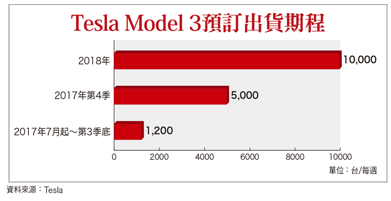 由於原本由台灣精密機械加工業知名大廠,所代工供貨予全球電動車大廠-特斯拉(Tesla),傳動系統重要核心模組部件-「減速齒輪箱」,因「前端傳動軸」出現成品加工瑕疵,為避免車輛耐用度受到影響、衝擊市場買家與投資人信心,Tesla執行長已間接透過,先前與Tesla同集團的「Space X」太空運輸事業大廠,長達十年以上往來、合作關係的「程泰集團」協力供(出)貨,程泰(1583)因此成功接獲Tesla預定自七月起開始供貨,最新款平價電動車-「Model 3」,傳動系統「減速齒輪箱」前端傳動軸代工訂單。減速齒輪箱重要部件瑕疵 台廠工具機集團出手奧援法人機構表示,程泰初期於台中大里工業區已建立一條生產線,總資本支出金額約新台幣二千萬元~三千萬元,相關車銑複合機台由程泰所自主供應,主要提供減速齒輪箱關鍵零配件-前段傳動軸車銑磨製程代工服務,成功打進Tesla Model 3車款供應鏈。法人指出,程泰所規劃提供予Tesla,電動車傳動系統所需關鍵零組件,預定自今年第二季開始供貨,初期製程規劃單月最大出貨量約二萬套;今年底時,單月供貨量將達約六萬套。程泰表示,因受惠於汽車零配件供應鏈拉貨潮興起,加上中國自動化應用需求日盛,接連帶動市場對高階工具機購置需求,目前接單情況持續升溫、暢旺;另一方面,歐洲、台灣市場現階段接單表現同樣熱絡,來自美國市場航太、能源產業的下單前詢單數量亦不在少數,程泰目前在手訂單總金額已達六億元新台幣。特斯拉預期Model 3車款量產進度,預估今年七月起開始量產供貨,至第三季底為止,預定每週出貨一千二百台;預期今年第四季時,每週產量可達五千台;預估二○一八年,每週生產量可達一萬台。