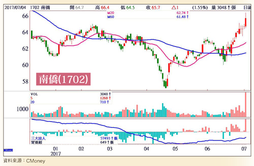原物料反彈 帶動台廠漲價效應另外,在國際小麥期貨部分,近期因為天氣的關係,出現了反彈甚至有急漲的情況,價格從四月二十二日的每英斗四○五美分,漲到最新的每英斗五三六.六美分,漲幅三二%,相當驚人,這樣的漲勢將會帶動接下來的台廠漲價效應,其中如南僑(1702)、東鹼(1708)、台肥(1722)等。最後要注意的,還有先前一直在談的受惠第二季平均油價較第一季下滑約四美元的航運,除了已經漲上去的貨櫃股之外,接下來也要留意長榮航(2618)、華航(2610),以及與中國港口有簽約的台驊(2636)等個股的股價表現。所以我說的還是跟上星期說的一樣,隨著指數創新高,有很多有價值的股票不應該被忽略。