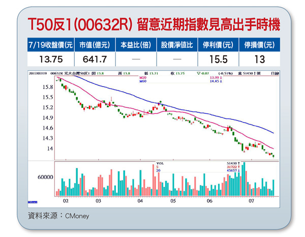 按照過去股市八二法則來看,會不會另一次關鍵向下轉折就快要出現?後市若真如規劃下來做中段整理修正,回檔滿足點少則季線深則在年線上下。若i8賣得好,第四季後會在蘋概股領軍下,再往上大漲一波一千五百至二千點行情到明年上半年。指數若第三季見高點做一波中段整理,建議可留意作頭完畢在相對高檔區買進一些T50反1(00632R)作避險。