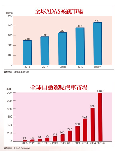聚焦科技產業未來焦點 人工智慧、自動駕駛、電動車有關全球「人工智慧(AI)」應用市場趨勢開展後,可為台廠相關零組件、模組元件、個別子系統供應鏈業者帶來的商機,預料隨著自動駕駛汽車、智慧自動化、智慧家庭及智慧城市、智慧醫療、智慧金融等,各式內建人工智慧運作系統的新世代智能服務領域,科技應用腳步日趨加速,全球市場產值規模不斷擴增,將為台灣相關支援性次產業供應鏈廠商,帶來中長期營運獲利成長利多背景。鴻海代工機器人擴大出貨鴻海重要策略合作伙伴-日商軟銀(SoftBank),目前已於商用市場上販售,委由鴻海所代工生產的人型服務機器人「Pepper」,且正持續獲得好評、擴大出貨規模中。同時,基於鴻海集團已於電池、電機製造技術領域,獲有成熟的研發及生產經驗,全球電動車大廠特斯拉,已有一○六個車輛零配件委由鴻海集團負責生產供貨,後市可望搶下全球「自駕電動車」市場龐大商機。由此不難想見,先前即已先後與可說是未來全球AI應用市場(Tratica預估,全球AI市場規模將於二○二五年成長達五九八億美元),各不同分項領域的龍頭大廠們,建立良好、密切合作關係的鴻海集團,等於已成功搶下包含:行動電子&物聯網裝置、智慧自動化&工業4.0&服務型機器人、自動駕駛汽車等AI市場領域,應用零組件、模組元件、成品硬體相關供貨、代工&組裝服務(EMS)全球市場大規模商機。以「自動駕駛(Autopilot)」汽車而言,隨著全球汽車產業界相繼將可提高汽車駕駛安全性的車距保持、車道偏移、車側盲點偵測、自動駕駛輔助系統(ADAS,拓墣產業研究所預估,全球ADAS市場規模將於二○二○年成長達四三三億美元)等半智慧行車主被動安全系統,安裝於出廠新車後,即等同點火後市,內建高科技AI核心自動駕駛系統應用產業市場成長引擎。預料後續在全球主要汽車廠商Audi、Benz、BMW、Ford、GM、Toyota、Volvo、VW,與包含現為全球最大電動車廠特斯拉(Tesla)在內,相繼投入大規模資源研發AI自動駕駛系統下,勢必將會大幅加速道路上,AI自動駕駛汽車奔馳、普及化速度(IHS Automotive預估,全球自動駕駛汽車將於二○三五年成長達一一八○萬輛),為人類提供高度便利、安全、的移動服務。隨著全球節能減碳風潮的日益盛行,有助大幅削減包含:氮氧化物、硫氧化物、二氧化碳、碳氫化合物等,汽車排氣污染物排放量的新世代行動載具「電動車(EV)」,不僅汽車市場消費大眾接受度開始明顯提高(尤以美國、中國車市為最;中國電動車市規模占全球市占率高達五七.八三%),全球電動車市場規模亦持續擴增成長中。根據拓墣報告指出,全球電動車市場未來將可望於二○二○年底,持續成長達二○五.五萬輛規模。國際市場布局版圖廣大而完整、旗下子公司產品應用面向多元化的鴻海集團,同樣已鎖定堪稱全球科技產業明日新星「人工智慧、自動駕駛、電動車」應用市場經營、深耕,積極尋求維持集團營收不斷成長勝利方程式。希望透過及早掌握未來科技應用主流,卡位龐大市場商機爭奪戰重要戰略據點,成功將集團總營收推上「十兆元新台幣」指標新高峰。