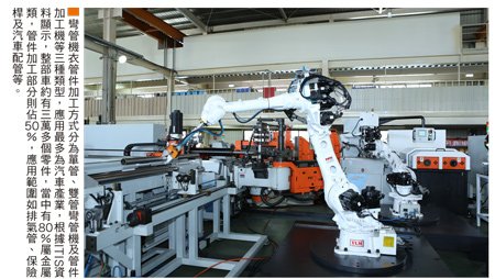 二○一一年,「工業4.0概念」由德國政府打響第一砲,此後,這個「五十八秒的戰爭」(在自動化工廠下,一輛車從生產到完成只需五十八秒)便在各個領域百花齊放,這些年過去,在機器人大軍壓境下,無人智慧化工廠的輪廓似乎也被刻畫得更加清晰。帶著新技術的老公司 隱身台南的隱形冠軍然而,比德國更早,早在二十年前,當其他老品牌還安逸的滿足於現況下,有個腦袋正「不安於室」的正在思考轉型─胡炳南,嘉義布袋人,現為全球知名車用彎管工具機大廠穎漢科技(4562)董事長。「看看這個彎管,是給波音747使用的」,胡炳南帶著一點驕傲,熱情的介紹著,很難想像全球國際知名跑車、波音747等彎管零件皆出自總部位於安南科技園區,這個連公司招牌都沒懸掛的老字號公司所設計的機台,真是名副其實的「隱形冠軍」。成立於一九八七年,穎漢科技以「金屬冷彎」技術見長,營收八成以客製化的彎管機為主,並以多年在機械工具零組件的實戰經驗,使得穎漢能夠在技術門檻高的高度零件設計製造的領域,如:薄閉管、1DR之小彎曲半徑工件及高難度彎管等領域,有卓越的成就,成為該公司無可取代的市場利基。以整體產業觀察,穎漢位處中游,機型營業銷售比重為油電型彎管機佔四四%、全電型彎管機二九%及周邊設備二七%,其終端客戶是汽車零組件製造商,主要客戶多為國際汽車排氣系統Tier1零組件供應商,專攻設計、製造金屬彎管機、成型機及立式工作母機等自動機械設備。主力產品「彎管機」使用冷彎工技與設備滿足汽車零件部分生產及家具、家電及健身設備等市場應用,當中汽車應用部分包含水箱管、平衡桿、空調管、引擎之架等;此外,穎漢更以大管徑工件及小DR之彎曲半徑加工技術,持續增加在大卡車管件、重工業造船等產業應用。