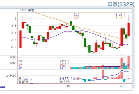前行政院長林全下台後,職缺由台南市長賴清德接任,市場開始預期應會有政策利多釋出,帶動股市提前上演「賴神概念股」的慶祝行情,像是台南有地緣關係、政策重點的綠能、生技股及新南向概念股,均成為盤面資金追捧的熱門標的。由於賴神概念股多是先前股價表現較差的族群,基期均相當低,若未來漲勢能夠延續,不排除資金效應將會擴散至整個低基期的族群。例如股價自去年八月的十四.八元一路下滑至今年六月的七‧八四元,近期逐漸打出底部型態的記憶體封測廠華泰(2329),就是可留意的個股。公司目前營收來源分為半導體及EMS成品兩大部份,去年第四季起受NAND Flash缺貨影響封裝測試接單,不僅產能利用率降至七成以下,單月營收也跟著跌破十二億元,低於損益兩平點的十三億元,進而拖累營運開始由盈轉虧,目前已連虧兩個季度。不過,近期市場傳出八月及九月接單轉旺,產能利用率拉高,將有機會見到單月虧轉盈(觀察營收是否突破十三億),成為股價上演破底翻行情的重要利多題材。另一個觀察點,則是去年八月金士頓才從前董事長夫妻杜俊元及楊美瑳手中承接了五‧四四萬張股票,每股成本十五元,總持股數已近二○%。短短不到一年時間,當初承接的股票已近腰斬,帳面虧損逾三億元,目前仍住套房中,能否藉由此次虧轉盈的復仇行情一次解套,也增添不小想像空間。