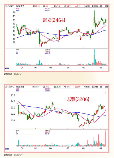 訂單大幅成長 盟立營收迭創新高盟立(2464):物流系統(五六.三八%)、資訊產品系統及產業控制器(四三.六二%)大廠,公告八月營收十.九九億元,月增二.一六%,年增六○.○九%;一至八月累計營收七五.四○億元,年增三○.五三%。受惠兩岸半導體、面板廠相繼投資及加碼擴廠,盟立在手訂單能見度已直透二○二○年。各項自動化系統工程訂單進度順利,七月合併營收攻上十.七五億元歷史新高,八月營收十.九九億元,年增率高達六○.一%,再創單月營收歷史新高。中國面板廠展開搶建十.五代廠計畫,盟立於半導體後段製程封裝廠自動化工程接單順利,先進自動倉儲廠已建立三座廠,營運不斷走高。智慧製造引動機器人應用熱潮,盟立機器人系統整合主要應用於汽車、面板製造產線,今年機器人預估銷售目標挑戰八百台,有望交出年增六○%以上佳績。盟立目前在手訂單約達百億元,較去年同期大幅成長近一倍。法人機構表示,依目前在手訂單能見度而言,預估盟立下半年營收有望逐季走高,訂單約一半以上為面板生產線設備,將可持續認列至明年上半年,營運前景展望樂觀。整體而言,法人推估盟立今年受惠面板廠設備訂單挹注,全年營收預估可達一一三.六三億元左右,年增約二八.一六%,EPS約二.五二元。志豐搶進ADAS防撞預警應用市場志豐(3206):耳機(三九.六二%)、蜂鳴器(三一.二三%)、麥克風(一五.三○%)、喇叭(一三.六六%)專業廠,公告八月營收二.四○億元,月增二○.六四%,年增七六.○二%;一至八月累計營收一四.一九億元,年增二一%。上半年累計營收九.七九億元,毛利率二三.五二%,營益率五.三五%,合併稅後盈餘○.四二億元,年減八.八%,EPS○.九元。產品廣泛運用於消費性電子、通訊、汽車電子、資訊、家電、醫療、工業設備、保全等領域。志豐近年來積極搶進「先進駕駛輔助系統(ADAS)」防撞預警應用市場,由於防撞預警功能及作動機制需透過電聲方式,將危險訊號傳達給駕駛人,除原有倒車警示用途以外,為車用電聲產品開啟新應用成長契機。法人機構預估志豐今年營收約二○.九九億元,年增約七.六三%,EPS約一.四一元。