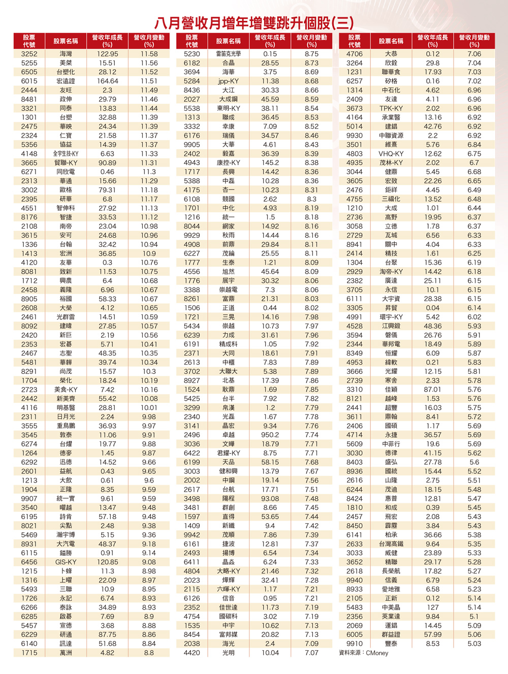 近期美國接連受到颶風襲擊,損失也不小,美股非但不受影響,在截稿前還拉出長紅K線,道瓊指數、S&P500指數、NASDAQ指數、費城半導體指數同步突破均線糾結區,處於攻擊發起位置,隨時都可能再創歷史新高;這樣的氛圍有利多方突圍,接下來就看外資態度了。颶風衝擊經濟 股市因禍得福事實上本次風災對美國的GDP是有影響的,颶風哈維(Harvey)與艾瑪(Irma)接連侵襲美國,不只使德州遭受重創,對佛羅里達州也帶來極大損失。根據氣象預測網站AccuWeather預估,艾瑪將帶來約一千億美元損失,使美國GDP(約十九兆美元)成長率損失○.五個百分點。而哈維預估造成一九○○億美元災損,估計美國GDP損失約一個百分點,有可能是美國史上災損金額最高的颶風。颶風帶來的經濟損失,包括企業停工、失業率上升、基礎建設與房屋毀壞、農損等,勢必會衝擊到美國第三~四季的經濟表現。美國高盛表示,過去曾對美國二次大戰以來的三十五個最強颶風進行分析,發現重大天災會對經濟帶來暫時性的趨緩,主要是衝擊消費者支出、企業庫存、房市和能源領域,目前的狀況可能使第三季國內生產毛額(GDP)成長率減少最高達一個百分點,也可能使九月就業人口減少二~十萬人。因此,高盛將美國第三季GDP成長率調降一個百分點,美銀美林也將預估值調降○.四個百分點。不過,風災對股市而言或許因禍得福,因為颶風打擊美國經濟,FED今年有可能不會出現第三次升息動作。另外,美國參議院也以八十票贊成十七票反對通過一二五.二億美元的哈維颶風救災撥款,及舉債上限及政府臨時支出法案延長至十二月八日等方案,眾議院也表決通過,這顯示有關舉債上限的問題暫時出現緩解,上述諸等因素都是美股轉強的因素之一。我們一再提及,只要美元尚未明顯轉強以前,基於資產配置的原則,亞洲新興市場資金回流美元資產的機率不大。所以包括台股在內的亞洲新興市場,將呈現馬照跑舞照跳的多方格局。觀察近期外匯市場,隨著歐洲經濟成長強度優於預期,政治風險大幅消退,歐洲央行(ECB)縮減量化寬鬆(QE)購債計畫已是箭在弦上。歐洲央行總裁德拉吉(Mario Draghi)表示歐央將於下次例會,十月二十六日討論縮減量化寬鬆議題,激勵歐元一度升破一.二美元大關;顯然,期待美元明顯轉強,仍需時間觀察。美元未轉強前 外資態度成關鍵既然如此,台股加權指數的表現空間,就取決於外資態度,連續性明顯買超,則指數將再創新高;反之,加權指數就陷入區間整理。至於個股股價的波動,選股條件將更為嚴謹,不但要考慮基本面數據(例如營收),還得搭配技術面、籌碼面之條件,過濾更多的風險。尤其國內法人近期買超的個股更值得留意,由於股市萬點的基期頗高,若非產業的中長線基本面趨勢明朗,法人不會在多事之秋的九月做大量布局。法人布局個股 基本面能見度高現階段投資人選股策略要達事半功倍,法人進出動向至為關鍵,畢竟機構法人的產業研究資源相對個別投資人要豐厚,在目前高基期的環境下,長線保護短線的思維更顯重要。標的篩選出來後,投資人可先列為口袋觀察名單,不見得要立即進場,等待未來一段時間量縮價穩,再尋求適當的切入點不遲。例如,合晶(6182),為全球第六大半導體矽晶圓供應商,其八吋N型重摻(Heavy-doped)產品應用在MOSFET、IGBT製程的市占率位居全球第一,現亦為全球前三大低阻重摻矽晶圓供應商。全球十二吋半導體矽晶圓已從今年首季吹起漲價風,各晶圓廠業者因合約期間、訂單規模不同,漲幅約達一○%左右。這波十二吋報價上漲的重要趨動力包括中國新建十二吋晶圓廠產能陸續開出、試產需求,及邏輯IC/Nand Flash/DRAM晶圓廠陸續導入的先進製程因初期良率不佳、test wafer由再生晶圓改用polishedraw wafer等的額外需求。而八吋矽晶圓也在這波缺貨潮中因十二吋與八吋具備某程度的替代性,所以合晶也在今年三月開始針對不同客戶分批漲價。合晶明年受惠漲價效應更大合晶產品線包括八吋、六吋及六吋以下半導體矽晶圓,二○一五年起積極提高八吋輕摻產品,帶動八吋產品出貨及營收比重向上。合晶以往虧損的營運包袱,即太陽能與藍寶石長晶部門已於二○一六年提列足額損失,今年起將不再成為公司獲利的絆腳石。由於中國大陸全力推動半導體自製率的提升,明年起多座中國晶圓廠陸續完工,而上海合晶旗下鄭州廠已於今年七月二七日舉行動土典禮,斥資人民幣十二億元興建月產二十萬片八吋矽晶圓廠,目標供應中國本土晶圓廠所需,產品種類則包含P-type輕摻(CMOS、fingerprint sensor 等)、N-type重摻(Power)兩大種類。公司目標在明年第三季先達成月產能五萬片,之後以每一季增加五萬片的進度推進。另外,合晶亦首度明確對外揭露第二期工程將興建十二吋矽晶圓廠,預定於二○一七年底動工,斥資人民幣四十一億元啟動月產能二十萬片的十二吋矽晶圓廠建廠工程。現階段下游晶圓廠為鞏固料源,合約簽訂的期間越拉越長,有助於矽晶圓廠的獲利透明度大幅拉高,整體估值(市場願意給的本益比)將大幅拉高,法人預估二○一八年合晶每股獲利將挑戰二元以上,值得長線追蹤。營收跳升法人買超 市場關注營收明顯跳升是基本面的最佳檢視方法之一,如果法人同時買進,更能增加市場認同度。例如廣明(6188),屬於廣達集團一員,主要生產協同機器人。不同於傳統的工業型機器人,協同機器人的特色包含與操作人員