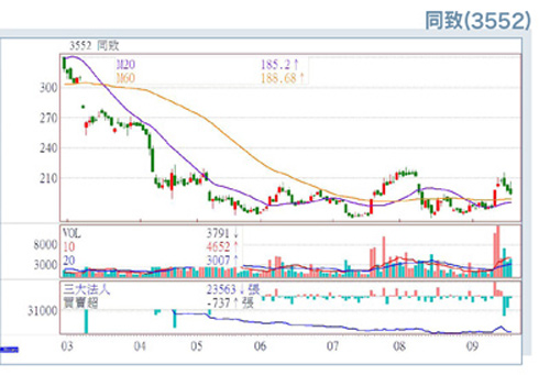 倒車雷達廠商同致(3552)過去一年受同業競爭與車市庫存調整影響,營運始終難有起色,衝擊股價自四六○元附近一路修正至二百元以下,跌幅逾五成。公司表示,第二季中國車市進入調整期,車廠間競爭激烈,造成部份客戶銷售、拉貨下滑,加上產品競爭者增加,導致削價競爭,拖累營收、獲利表現。隨著產業進入第四季傳統旺季,被壓抑的消費買氣將釋出,經銷商庫存水位降到約四七%(降到五成以下時屬偏低的健康狀況),帶動車廠客戶八月訂單明顯增加,回補庫存的時間有較預期來得早,目前客戶對九月看法維持正向。中國自主品牌車廠客戶長城汽車,今年以全新SUV品牌魏派(WEY)推出三款中高端車型,其中VV5在八月上市後已造成熱銷,未來銷量有望持穩在每月一.五萬輛。目前同致供應魏派VV7的產品為倒車雷達及自動停車系統,VV5則獨家供應上述產品外,還加入三六○環視影像系統(一套約三~五千元),單一車款的採購金額增加,可望帶來可觀的營收貢獻。公司明年第一季新增廣汽本田及東風本田等客戶訂單,東風本田的思域(CIVIC)為熱銷車款,廣汽本田的凌派(CRIDER)則是明年初開始正式交貨,獨家供應攝像頭,將為營運帶來新成長動能。配合長城汽車魏派熱賣、環車影像系統(AVM)新品大量出貨,八月營收已較七月增加逾一億,加上中國車市暑休完畢、旺季來臨及人民幣升值,營運有望逐步加溫,法人預估同致第四季營收將季增二五%,單季EPS二.八二元,較第三季EPS預估值一.五二元成長近一倍。