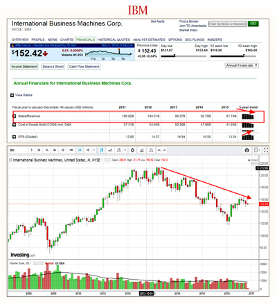 提出「破壞式創新」(Disruptive Innovation)理論的大師Clayton Christensen教授認為在一九八○年代之後,商業主流開始以許多比例指標(ratio)來評量企業,結果反而本末倒置,企業運用資金透過財務工程追求漂亮的指標數字,而不願意投入耗費資本較高的新市場型創新,使得破壞性創新循環停滯。例如知名的大型資訊公司IBM,過去五年花了五九一億美元進行股票回購,使得整體獲利在外流通股數變少,在整體獲利衰退下仍使EPS上升,然而股價自二○一二年之後就開始走下坡。這告訴我們基本面的財務數字漂亮,不代表公司具有前景,EPS高、本益比低,也不見得股價就會漲,一切仍需回歸到市場價格。正如RSI指標的發明者Welles Wilder在《亞當理論》一書寫道:「換句話說,我們必須願意屈服,追隨市場的腳步─而不是設法把它納入我們意見和知識的小框框。這話是不是說,所有關於資金流動的研究和各式各樣的基本分析,全部必須束諸高閣?是的,沒錯。」