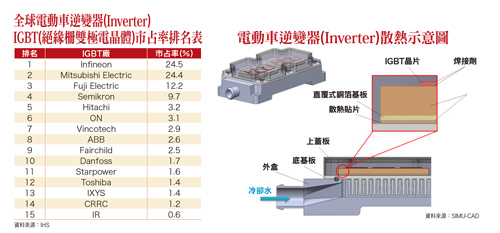健策旗下「車用IGBT散熱模組」產品,經過三年開發期程後,現階段已成功通過國際大廠認證考核,正式跨足電動車、油電混合車IGBT散熱模組市場,初期供貨對象將以歐系汽車廠為主。未來無論是油電車或電動車款,皆需使用、內建IGBT水冷散熱模組。同時,因中國新能源車市場正高速成長,健策亦計畫同步攜手國際大廠,積極搶攻中國電動車廠IGBT散熱模組供應鏈。健策表示,目前IGBT市場開發進度較原本預期為快,正積極克服產能短缺、供貨不足問題;預計今年第四季車用產品線可開始貢獻營收,明年起,新能源車應用產品線將可加大營收挹注力道。健策向來即專精於模具製造,其所擁有鍛造技術具備成本競爭優勢。由於節能減碳已成為全球環保發展重要趨勢,預料後市於各國扶持電動車產業發展政策相繼出爐後,車用IGBT散熱模組有望成為健策未來營運主要成長動能。車用IGBT散熱產業成長 興櫃新星搶搭順風車興櫃公司艾姆勒車電(2241),目前已為全球少數有能力以「粉末冶金製程(MIM)」,生產油電混合車、電動車所用「逆變器(Inverter) IGBT散熱模組及其零組件」專業金屬加工廠商。「逆變器」主要用以將電動車電池直流電力,轉換、放大成為交流電力,以成功驅動電動馬達運轉,推動車輛前進之動力系統關鍵核心零組件。也由於逆變器於運轉過程中,會因為大量電力的傳導、流動而產生高溫熱力,因而需要搭配體積小、散熱功率高之散熱模組協助降溫,使得IGBT散熱模組成為逆變器模組中不可或缺關鍵零組件。