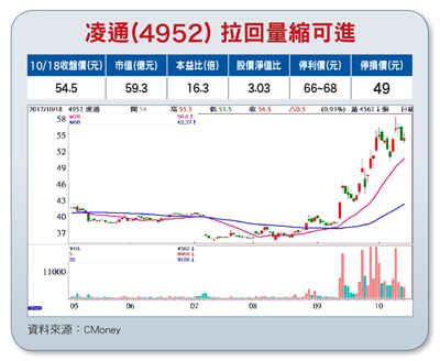凌通(4952)為凌陽轉投資的消費性IC設計公司(凌陽持股三四.三%),產品線分為消費性IC、多媒體IC、MCU三大類,其無線充電MCU已通過WPC聯盟Qi的認證,也是國內最早量產出貨的無線充電晶片廠。凌通看好影像攝錄類產品市場,目前除持續布局高中低階的行車紀錄器,並推出前後雙鏡頭及附加行車安全輔助系統的產品外,也積極布局航拍機與運動DV市場。凌通目前已開始出貨無線充電發送器(Tx)與接收器(Rx)等元件,最新推出的15W無線充電板(Tx板),已經成功拿到無線充電聯盟(WPC)Qi規格認證,有助於公司搶攻智慧手機市場。自從蘋果加入WPC聯盟並推出具無線充電功能的iPhone 8/X後,確立了無線充電市場規格由Qi技術勝出,不過蘋果自行設計的無線充電板AirPower要等到明(二○一八)年才會推出,因此只要業者推出的無線充電板獲得Qi認證,並取得蘋果MFi認證,就可以用來替iPhone充電,使得無線充電供應商第四季接單大爆發;已知第四季接單量是前三季總和的兩倍,明年出貨量則有數倍成長空間。此外,大陸前三大智慧手機品牌廠華為、OPPO以及Vivo都將於明年全面跟進,加上小米也於十月初正式加入WPC聯盟,未來無線充電在智慧型手機市場及穿戴裝置上的滲透率將會快速拉升,凌通成長潛力值得期待。