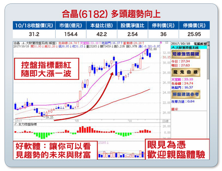 【個股推薦】合晶(6182)為全球前十大半導體矽晶圓材料供應商之一,龍潭廠八吋晶圓月產能預計年底提升至二十五萬片,楊梅廠六吋晶圓月產能三十萬片,上海合晶廠六吋月產能約二十一萬片,另於河南鄭州籌設月產能二十萬片八吋晶圓廠,預計明年第一季完工。主要利基題材有:(1)矽晶圓供不應求,半導體廠啟動搶貨大戰:繼第三季矽晶圓報價上漲約一○%至一五%,平均價格達七十美元左右後,第四季因供需更加吃緊,預計售價可望再調漲一○%,平均價格將達八十美元。隨著矽晶圓缺口不斷擴大,晶圓代工與IDM廠不單爭搶今年第四季產能,更提前預訂明年第一季產能,業界更傳出因貨源有限,且中國大陸半導體業者也加入搶奪,導致明年第一季矽晶圓供給缺口達一成,矽晶圓報價提前大漲,甚至平均售價有機會挑戰一百美元大關,單次漲幅達到二五%。(2)全球矽晶圓市場喊燒,後市營運持續看俏:全球八吋與十二吋矽晶圓需求熱絡,出貨量已連續五季正成長並創歷史新高,報價持續看升。合晶第二季營收十五.八億元創歷史新高,毛利率二三%,EPS連二季正成長,上半年達○.一八元。八月合併營收達五.七八億元,創二○一三年五月以來新高,稅後純益○.三七億元,較去年同期大幅轉盈,合計七至八月稅後純益○.六一億元,較去年同期稅後虧損○.三六億元明顯改善,EPS○.一四元,也優於去年同期每股稅後虧損○.○九元。(3)技術面處於相對有利位置,月線、季線、半年線及年線等中長期均線仍呈多頭排列向上,加上法人力挺偏多,後市仍有持續向上機會可期(※基本面資料若有異動,依公開資訊觀測站最新訊息為主)。【操作建議】低接不追高,下檔守穩前低二五.九五元關卡不破,逢低於富貴線支撐區附近仍可留意,控盤指標翻紅,一旦攻擊力道再度轉強,隨時有再創新高機會可期,設好停損停利(詳見附圖說明)。