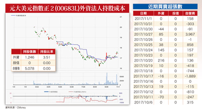 指數空間看外資 外資心態看美元加權指數的發展空間,最終仍得看外資的態度,而研判外資買超積極度,也不得不觀察美元強度。如果美元指數走勢轉強,外資基於資產配置原則,買超台股會相對消極(不一定大幅賣超),則指數空間受限;若美元指數陷入橫向整理,或者升勢緩慢,只要美股不大跌,外資持續買超意願就相對較強,加權指數就可望持續向上挑戰高點。目前歐元區核心通膨尚未顯現出令人信服的上行趨勢,因而認定經濟還需寬鬆貨幣政策的支持,因此歐洲央行(ECB)維持三大政策利率不變,預計低利環境將持續更久一段時間,非常規貨幣政策(QE)時間延長至二○一八年九月,購債額度自二○一八年起降至每月三佰億億歐元的規模,合計ECB於二○一八年將再釋出二七○○億歐元。而QE到期之後還有一段緩衝的觀察時間,因此預估歐元區的升息時程可能落到二○一九的下半年,這會有一個市場效應就是歐元易貶難升,則美元就相對易升難貶,將會影響未來外資買超台股的積極度,投資人必須放在心上。在交易策略上,建議投資組合可納入追蹤美元指數的ETF,例如在集中市場掛牌交易的元大美元指數(00682U)、元大美元指數正2(00683L),由於現在ETF商品已多元化,把國際匯率與利率的變因加入交易策略的考量,可增加交易策略的靈活度,投資人相對較不受台股多空波動影響。