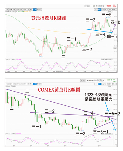 美國九月非農就業人數公布減少三.三萬人,不僅低於前值的十五.六萬人,也較預期值增加八萬人低,所幸九月失業率從四.四%降到四.二%,同時就業參與率從六二.九%提高到六三.一%,顯示勞工市場並沒有惡化傾向。美聯儲重視的平均時薪月率也從○.一%提高到○.五%,大致上若非私人部門就業人數減少四萬人,拖累非農就業人數跌破零軸,其實九月非農數據還算正面。九月非農意外的差 可能不是常態十月十二日美國勞工部發布上周初請失業金人數為二四.三萬人,低於前值與預期值,十月連續第二周下滑,利空金銀,資料公布後,金銀同步走低,但儘管颶風艾爾瑪和哈威造成一定影響,仍顯示出美國勞動力市場整體狀況健康,跌幅不大。只不過,非農就業人數已七年不曾跌破零軸,短期利空美元指數的衝擊仍存在,在利空美元的情況下,漲到九四.二七點的美元指數拉回五個交易日,回測二十日均線支撐,結果十月十三日晚上八點半公布美國九月核心消費者物價指數年率現值一.七%,持平但低於市場預期的一.八%,利空美元,同時間公布的美國九月零售銷售月率現值一.六%,也低於市場預期的一.七%,加重美元瞬間跌勢,盤中最低跌到九二.七五點,但得到20MA支撐的作用而拉下影線,等同於確認20MA有支撐。美元可能反彈到年底能夠在三大宏觀數據的利空衝擊下,守住二十日均線支撐,演出利空不跌,顯示美元指數九十一點有觸底徵兆,年底在美聯儲可能升息二十五個基點情況下,不排除進入中期反彈格局。從美元指數月K線圖來看,九月九一.○一低點可能是金融海嘯以來第四波複雜波的a小波拉回低點,經過八個月的拉回之後,獲得二五○個月均線支撐進入到b波反彈,至少有機會反彈三個月,也就是說持續到十二月,高點可能是落在九十八至九十九點之間。支撐美元指數反彈另一個理由就是,市場預期中性偏鴿派的Powell大概率出任美聯儲下任主席,市場肯定金融市場的穩定性,有利美元指數,但由於近期FOMC會議在即,美元指數波動變小,資金流向油市,布蘭特原油創新高突破六十美元大關。除了美元石油的連動性之外,另一個因素就是西班牙地緣政治風險提高,屬於戰略資源的石油也有避險資產功能,吸引資金流入,變相削弱黃金的避險功能。