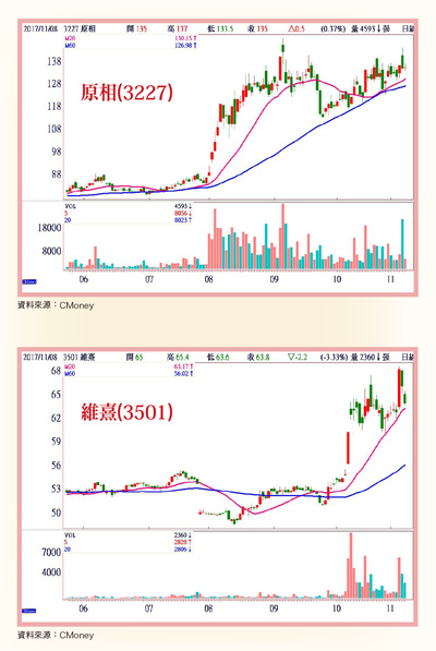 美股四大主要指數短線續強,延續中多格局,後市仍有望持續支撐台股走升。後市美元指數如持續走揚,新台幣匯率繼續走貶,恐將減緩外資「錢」進台股信心。DRAM續漲 南亞科明年營運看好南亞科(2408):公告十月營收五○.七二億元,月增九.二一%,年增三二.七三%;一至十月累計營收四三二.二二億元,年增二九.五八%。DRAM供不應求市況未見改善,龍頭廠南韓三星半導體正式通知通路商,計畫明(二○一八)年第一季再度調漲DRAM報價,以行動式DRAM漲幅最大,預料將創下DRAM價格漲勢最長、漲幅最大歷史紀錄。 DRAM市況火熱,主要因為各類應用需求強烈,尤以「資料中心」伺服器用DRAM需求增幅最大,大量排擠行動DRAM記憶體產能,三星於第四季調漲行動式DRAM報價一○~一五%。同時,蘋果iPhone X預購優於預期,中國品牌手機廠展開機海搶市策略,而AI(人工智慧)、智能汽車亦對高頻運算DRAM需求孔急,供需缺口難補。國內DRAM大廠強調,全球主要DRAM大廠三星、SK海力士、美光等,仍以「製程升級」為提高DRAM產量主要作法,即便三星果真調高部分產線產量,料將無法完全滿足需求缺口。預估全球DRAM市場明年仍將處於缺貨狀態,整體產業發展仍將會是健康的一年。南亞科預估,明年DRAM需求量年增率約二二~二四%,有利後市成長動能。法人機構預估南亞科明年營收可達七五三.三○億元左右,年增率約二八.六七%,EPS約一○.四二元。原相(3227):CMOS影像感測元件廠,公告十月營收四.五九億元,月減○.二二%,年增一六.一三%;一至十月累計營收四二.四八億元,年增一八.五一%。遊戲機熱賣 原相獲利倍增 受惠任天堂Switch產品熱賣、搖桿晶片出貨持續增加,加上滑鼠與安防監控產品出貨量亦同步成長,原相公告第三季營收達一三.九億元,續創單季歷史新高,毛利率亦同步走高,季增七.三%,年增二五.三%,稅後純益達二.二五億元,創七年多以來新高,季增一八.七%,年增率高達六倍之多,EPS一.八三元。原相前三季合併營收三七.八九億元,年增一八.八%,毛利率達五五.二%,年增五.一個百分點;稅後純益四.七億元,年增率亦高達四.五倍,累計EPS三.九六元。原相前三季獲利大幅擴增,除受惠任天堂遊戲機搖桿晶片出貨營收比重拉高外,另一重要因素,即為今年開始已不須再支付AVAGO技術授權費用,營運費用減少,整體獲利成長明顯。隨著美國食品藥物管理局(FDA)新推行FDA Pre-cert前導計畫(Pilot Program),可加速健康科技創新、進入市場時程,原相「心跳感測器」銷售動能第四季明顯增強,明年出貨量有望爆炸性成長。