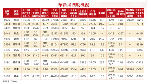 焦師傅荷包賺滿滿 留意漲幅落後個股目前作帳最為積極的當屬華新麗華集團,今年截至十月底集團市值已達二七五一億元,較去年增加一一六四億元,增幅達七三%,為台股集團中市值成長最多的集團,焦師傅可說是荷包賺滿滿,相信集團中漲幅較落後的瀚宇博(5469)、精成科(6191)、和鑫(3049)及華東(8110)等,年底前都可能有表現的機會。不過,像是大同集團因董事長林蔚山被依照證交法加重背信罪重判八年、永豐金集團前董事長何壽川違反金控法特別背信等罪被台北地檢署起訴,目前仍在風頭上,不僅降低市場資金追價的意願,推測集團作帳動作也會收斂一點。聯發科集團則有望藉由多個利多題材,讓股價同樣獲得價值重估的機會。隨著蘋果與高通(Qualcomm)的官司愈演愈烈,已有傳聞二○一八年新款的iPhone 及iPad將會改用英特爾(Intel)及聯發科數據機(Modem)的晶片,躋身蘋概股將會是未來評價調升的重要關鍵。雖說產業人士認為,聯發科落後高通技術約三年,但聯發科是提供特殊應用設計晶片(ASIC)服務的角色,且的確蘋果有在測試中,以iPhone每年上億支的銷售量估算,這筆訂單具有一定的想像空間。