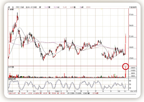 億光(2393)為國內資深的LED公司,有三十四年以上的產業實力,位居全球LED產品市佔率前五大,更是國內最大,可配合客戶產品應用需求做最適合的封裝產品。可應用於:照明、電視與顯示器、機上盒、手機、平板、大型室內外看板、汽車內裝、LED背光源…。億光股本四十四億,去年營收二九三億,營收週轉率六六八%,訂單及營運效能強,平均毛利率都能控制在二二~二五%。最近五年全球LED公司受大陸低價傾銷衝擊,國內大多數業者多呈現連續虧損,億光卻能保持EPS四~五元實力,以國內最大LED晶粒廠晶電一○四年每股虧損二.八元,一○五年每股虧損三.三元,億光連續兩年分別交出四.二元及四.一元好成績,堪稱業界模範生,今年上半年EPS一.五六元,以十一月七日收盤價五一.四元計算,本益比十二倍偏低,具投資價值。最近三個月美國最大LED公司Cree股價由二○.五元美元大漲至三七.四美元,漲幅達八二%,帶動國內LED產業同步上漲,藍寶石基板兆遠漲一八二%,越峰漲二六五%,LED晶粒的晶電漲一一六%,光磊漲六四%,隆達漲四二%,上述公司大多仍處虧損,反而最賺錢的億光漲幅最小僅一五%,最近有加速補漲氣勢。億光股價自二○○七年一六一元開始盤跌,目前仍在歷史谷底,近八年來在台股多頭行情中完全處於落後狀態,本週股價終於站上年線及所有均線呈多頭排列,法人持股二九.三%,董監大股東持股二八%。
