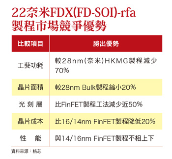 規模將持續大幅成長之終端消費應用領域,以有效協助企業提升市場競爭力及拉高在地自製化比率,增強後續承接包含海外市場客戶在內的接單能力。中國半導體業IC晶片製造產業「自主化、在地供應自給自足化」最新合作案例,近期已正式對外公布。美商、全球半導體晶圓代工大廠格羅方德(GLOBAL FOUNDRIES),於九月二十七日正式對外界發表新一代無線通訊及物聯網應用晶片組製程方案,由聯發科(2454)集團旗下晶心科(6533)與格羅方德所共同合作提出,將於由四川省成都市政府,於今年六月十二日投資一億美元,在高新區所建造,預定於明(二○一八)年三月前完成建廠工程之十二吋晶圓廠,採用「二二奈米FDX」製程代工生產晶片,供貨予客戶之「無線射頻/類比製程設計套件(PDK)」:「22FDX(FD-SOI)-rfa製程解決方案」,以及適用於5G通訊、汽車偵測雷達、WiGig(Wireless Gigabit)晶片、SatComm、無線行動網路回傳毫米波製程設計套件的「22FDX(FD-SOI)-mmWave製程解決方案」,兩者皆可協助相關IC晶片廠商,於進行類似產品之設計、生產時,達成IC晶片產品效能最高、最佳化研發目標。格芯新一代高階製程 台廠供應鏈倒吃甘蔗現階段中國物聯網產業市場,由於受惠中國境內網路通訊新世代5G規格,商轉腳步持續加快,以及半導體IC晶片製造技術,不斷向更高階製程推進下,可說已正式啟動前進機制、擴大產值。全球半導體IC晶片製造業,相關上下游供應鏈國際大廠:ARM、高通、英特爾、輝達、恩智浦、德州儀器、博通、意法、三星、聯發科等,未來預計使用具「低功耗、高可靠性」應用優勢之通訊、核心處理器、微型處理器晶片,再度複製現有半導體晶片,廣泛應用於其他市場領域的成熟發展市況相似,積極搶進中國產值規模日益擴大之無線射頻、物聯網市場。中國半導體IC晶片廠 面臨市場競爭壓力如此一來,勢將對於中國現有具、市場高知名度,積極跨足無線射頻、物聯網市場之半導體IC晶片廠,如海思、展訊、紫光國芯、北京君正、上海貝嶺、大唐集團旗下聯芯科技、全志等,帶來快速升高市場競爭壓力,也同時拉高其對於可提供高端、先進IC晶片製程之晶圓代工廠,代工產能需求規模。