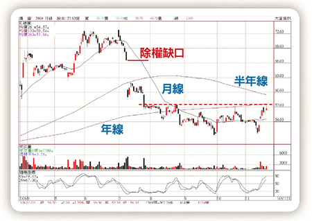 漢唐(2404)是國內較大型的工程建設公司,服務項目:工程顧問、高科技廠房無塵室設計施工、空調系統、電力系統、中央監控系統。台灣是高科技發展重鎮,無塵室及工程需求很大,漢唐股本二三.八億,年營收都能達百億,營運效能高,二○一六年合併營收一五四億,週轉率六四七%。漢唐二○一六年EPS六.五二元,今年第三季EPS一.七六元,前三季四.○九元,比去年同期四.七九元雖然衰退,但每年十一及十二月都是入帳高峰期,今年EPS仍可保持五.五元的高獲利,以十一月二十一日收盤價五六.七元計算本益比僅十倍,具投資價值。漢唐目前手中訂單及在建工程高達一五○億,因此明年仍至少保持五至六元的高獲利。台積電十一月十四日董事會核准新台幣一二九八億資本預算,其中五○五億用以建廠,七九三億擴充設備製程,今年資本支出創下一○八億美元歷史紀錄,未來幾年資本支出占營收比重也將維持在三○~三五%水準,對漢唐是潛在大商機。漢唐今年六月一度股價漲到七二.六元,後來因為除息六元加上股價回檔至五一.二元,近四個月股價都維持在五十一至五十七元的箱型走勢。在台積電擴大資本支出激勵下,股價站上月線五四.五元並再度挑戰年線五七.六元及箱型頸線五七.三元,只要能帶量突破將會有一波新的多頭行情,有機會回補除權缺口六十七元。目前法人持股三○.二%。