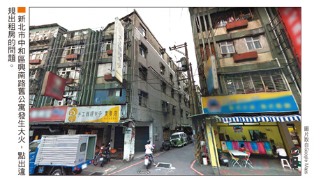 新北市中和區一棟老舊公寓於十一月二十二日夜晚遭人縱火,惡火吞噬九條人命,這場令國人震驚、悲痛的大火,再次掀開違法出租房屋的黑洞。發生大火的老舊公寓第四層及第五層樓,整層各約四十多坪,卻被隔成十四間出租房,總計兩層共二十八間,而每間房的坪數才三坪左右,有如「蝸居」,根本談不上居住品質,卻是不少「出外人」棲身之處。畸形出租房 低薪租屋者悲歌 以中和市大火的「蝸居」來說,每月租金五千至五千五百元,若以一個月薪水二十二K的人來說,幾乎占掉四分之一,萬一薪水還比二十二K少的話,可能租屋環境更差。「台北居,大不易」,不僅是房價高的讓人買不起,就連一般出租房的行情也是高不可攀;近期某出租網就有一件「陽台」變雅房(房內沒衛浴設備)出租案,另還有客廳用「窗簾」一隔,也能算一間房來出租。只能說,這種「怪」出租房,是時代下的產物,一如多年前,大陸一部電視劇「蝸居」,點出在都會地區謀生不易的「變形物」。中信房屋副總劉天仁表示,台北市的套房租金,一般在一.二萬元至一.八萬元,若是有管理的商務套房,基本上租金約在二.五萬元左右,就算是二至三房老公寓,租金行情也有一.五萬元至二.五萬元。至於新北市,如果是大樓的大套房,租金約在一.二萬元至一.七萬元間,如果是舊大樓的小坪數套房,或是公寓套房,租金也要八千元起跳。因此許多人為了省租金,減輕負擔,通常會選擇雅房,或是老公寓的頂樓加蓋及分割套房產品。住商不動產企劃研究室主任徐佳馨表示,目前台北市的平均住宅租金行情,大約一坪八百至一千二百元,而新北市大約一坪五百至九百元,大致上,不同類型的房子租金高低差異頗大,通常整層住家因為總租金高,所以平均單價較低,至於獨立門戶的套房單價最高。此外,房子位於哪個行政區也會影響租金高低,這部分基本上也與房價連動,精華地段房價高、租金也高,不過房子本身的屋況條件,往往是影響租金最大的因素,就算位於同一個地段,房屋有沒有電梯、管理、屋齡大小、家具設備等等,也都讓房子的租金有大幅落差。新北市中和地區的房仲業者也指出,以發生大火的中和區興南路二段的舊公寓來說,每間房約三坪,每月租金卻要五千五百元,明顯偏高,但相對於台北市出租套房都要接近一萬元左右,自然成為薪資不高的受薪者,選在台北市外圍租屋的關鍵。而像發生大火的中和舊公寓,屋內被違法隔成這麼多間,就建築法規來說,只要事前沒申請變更,且經核准的話,都屬室內違建,但因為此種違建若沒人檢舉,政府單位也「看不見」。只是,此處所發生奪去九條人命的大火,究竟能為整個台灣的違法出租房問題起到何種警示效用,就有待觀察。