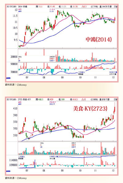 中鴻今年營運可望優於去年中鴻為中鋼(2002)旗下鋼捲軋延廠,產品主要有熱軋、冷軋,合計占整體營收高達八○%至九○%,其餘為鍍鋅鋼捲、鋼管等產品。客戶以國內單軋廠為主,目前內銷市場約占總營收六○%,外銷市場占四○%。外銷以韓國、菲律賓、越南、泰國、馬來西亞等地為主。由於上游料源具價格競爭力,且不需大量囤積庫存備用,中鴻製造成本波動性相對降低許多,有助提升營運。受惠產品報價止跌回升激勵效應,第三季合併營收達一○三.四七億元,創近四年半以來高點。展望第四季營運,由於中鴻第四季報價較前一季明顯走升,法人預估,中鴻第四季產品利差可順利回到較佳水準。同時,中鴻第四季每月平均銷售量亦有望維持二十萬噸水準,產線稼動率亦可望明顯拉高,加以每月鋼管銷量均走穩於一萬噸之上,已開始挹注獲利,法人樂觀預期中鴻第四季營運可傳出佳音,今年營運有機會超越去年水準。法人機構預估中鴻明年營收可達四三六.六五億元左右,年增率約二二.四五%,EPS約二.○八元。美食-KY估第四季營收持續高檔美食-KY(2723):西點(營收占比三四.二四%)、麵包(營收占比三四.二二%)、飲料(營收占比三○.○○%)專業產銷廠,公告十月營收二○.二五億元,月減九.二三%,年增一三.三六%;一至十月累計合併營收一八九.○三億元,年增三.一○%。美食-KY主要經營複合式餐飲連鎖店85度C,目前中國已有約五五○間門市(直營為主),台灣約四百家店(加盟為主)以上,美國市場則設立三十七間門市,其餘包括香港、澳洲等地亦已開設門市搶占商機。受惠傳統旺季效應,美食-KY第三季營收達六一.八八億元,營運表現亮眼,季增一五.九二%,年增九.九一%,創單季歷史新高,營益率達一二.七四%,年增一.二六個百分點,優於市場預期,稅後淨利六.○五億元,年增率達二二.二四%,EPS三.七一元。法人表示,預估第四季營收可望維持與第三季相同水準;同時,於美國門市營運持續成長,新開門市營運費用控管得宜,中央工廠稼動率不斷拉高,配合中國門市同店營收繼續成長帶動下,預料第四季營益率有望交出同比正成長佳績,全年EPS預估可站穩十三元以上。展望明年,預估美國展店數將不少於今年,加上中國門市持續進行產品組合優化調整,營收、獲利有機會持續走高。法人機構預估美食-KY明年營收可達二七○.二一億元左右,年增率約九.一三%,EPS約十六.○九元。
