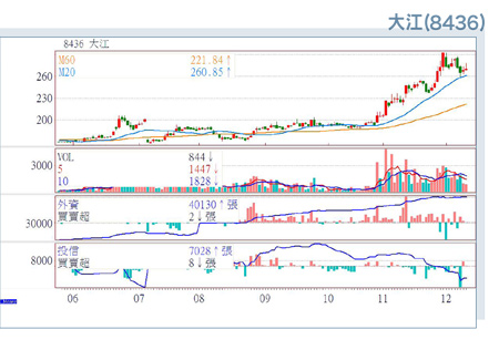 原相(3227):股價強勢上漲,受惠於任天堂遊戲機 Switch在全球熱銷,法人指出,原相目前產品結構中,來自電競用滑鼠的需求相當強勁,帶動滑鼠Sensor出貨暢旺;遊戲機Sensor受惠客戶端出貨成長,成為業績增長的重要動能之一。麗豐-KY(4137):受惠美容連鎖加盟通路成長強勁帶動,十一月單月營收創今年新高,達新台幣四.三一億元(人民幣九五一三萬元),月增率三六%、年增率六一%。法人看好,麗豐第四季EPS將達二.九一元,獲利年成長可望創歷史次高。法人表示,麗豐加盟店家數已達三八八八家,受惠十一月的雙十一促銷活動,並配合加盟店舉辦多場拓客茶會及精準測膚活動,推升十一月營收創新高,預期十二月可望維持高檔下,預估第四季營收季增率應有一五%實力,全年EPS有上看七元實力。日揚(6208):外資在十月底十一月初開始由賣轉買逐步進場,融資水位則持續下降,籌碼集中在法人手中,有助於股價持續推升。十月營收月增九.三六%,年增五九.○七%,表現相當強勁。法人表示,第四季兩岸整體需求看正向,真空製程設備需求看俏,加上今年上海廠情況持續改善,全年營運表現估可優於去年。大江(8436):受惠中國對機能性飲料需求持續成長,加上近期電商平台微商城的需求,營收占比最高的飲料產品線需求暢旺,並帶動整體營運表現。市場看好,大江飲料廠稼動率從年初的兩成提升至六成,在需求持續成長下,第四季營收亦可望逐月墊高。
