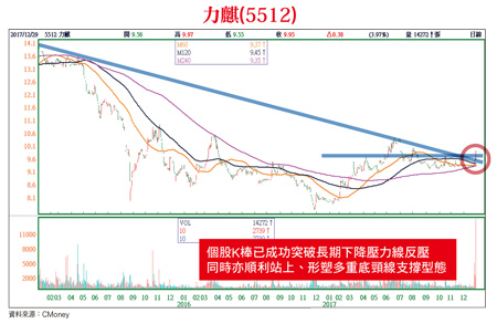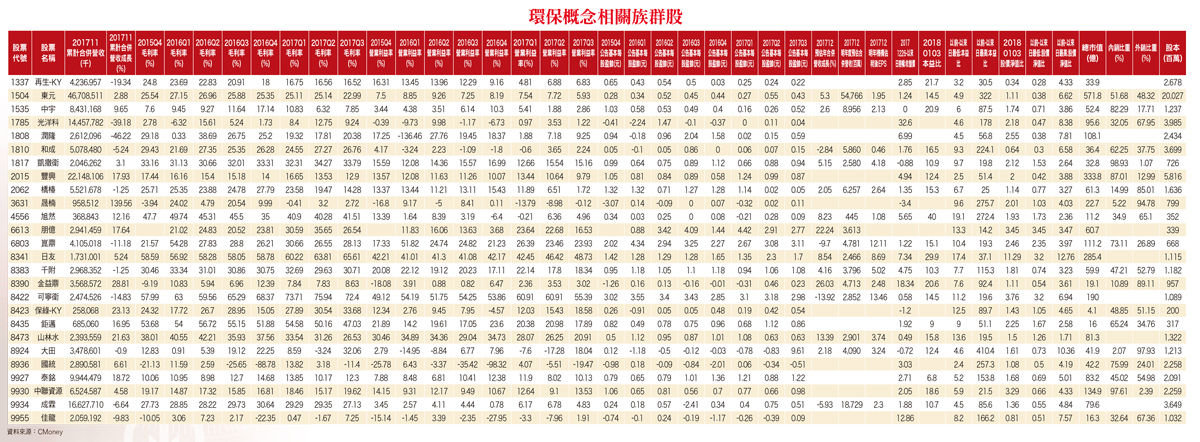 力麒轉投資有成 母以子貴 前進中美洲古巴 商機看好台灣環保工程&物業投資發展商力麒(5512),為山林水持股法人大股東之一,持股一.一五%;同時,與北控集團策盟合資成立鶴京企業,合計控有山林水六五.一九%股權,後市將可受惠來自山林水營收獲利成長動能。此外,力麒集團與北控集團也透過入股加拿大掛牌上市採礦公司MVM,共赴古巴投資。力麒表示,此項投資案將委由北控集團主導,目前集團投資總額約新台幣三億元,持股一○%左右。其中,力麒持股五%~六%、山林水持股約三%,未來預計取得二○%股權。力麒與北控集團古巴投資案,位處哈瓦那觀光區域,北控集團目前握有該項投資案約二千~三千畝土地,規劃打造為合併高爾夫球場、頂級飯店、別墅等設施之觀光旅遊休閒區,該項投資案總金額預估達新台幣二一○億元。朋億開發廢棄溶劑回收系統 與日本住友化學合作前景佳台灣科技廠化學品供應系統廠朋億(6613),為無塵室機電系統整合工程台灣大廠聖暉(5536)旗下子公司,股本二.九六億元;目前聖暉約持有朋億七三%股權,朋億於二○一七年十二月二十八掛牌上櫃後,依法持股將低於七○%水位。朋億成立於一九九七年,創立初期即與日本住友化學(SUMITOMO,化學綜合應用大型集團)進行工程技術合作計畫。朋億主要以提供「高科技產業製程供應系統設計及設備銷售」為主,主要往來客戶為海峽兩岸半導體、面板國際大廠;依產品應用別區分,今年前三季半導體產業共計占比五六%、綠能光電產業占比三七%、其他占比七%;如依銷售區域劃分,中國市場占六○%比重、台灣市場占比三五%、其他海外市場占比五%。朋億今年前三季營收二二.○三億元,年減二.七五%,主要因部分進行中之光電廠接案尚未開始認列營收所致;毛利率則達三○.五○%,年增率八.六%,主要因營收毛利較佳小型專案、擴充設備營收比重拉升帶動;前三季稅後淨利二.九九億元,年增率達三三.九二%,累計EPS為一○.一○元。就毛利率表現而言,朋億二○一五年、二○一六年毛利率分別為一五.二四%及二二.一八%。朋億毛利率大幅提升主要原因為:(一)產品組合改善:包括二○一五年新投入綠能環保事業,新業務學習曲線有待拉升,且亦未達經濟規模等問題,造成營運成本增加。二○一六年新事業逐漸克服前述問題,毛利率因而開始明顯回升(二)公司精實管理政策:朋億先前曾遭遇利潤率降低、部分呆帳問題未解,因此開始進行作業標準化、制定施工標準書等改善作業,從管理面著手,有效降低成本、提高營運效率。朋億為廠務系統中「水、氣、化整合專家」。主要往來供貨及服務客戶包括:聯電、日月光、矽品、友達、南亞、台灣美光等,中國市場客戶則有:中芯國際、華星光電、中電熊貓、和輝光電等。目前以「高科技化學品供應系統」為主要營收貢獻,海峽兩岸主要半導體、面板大廠,大部分都是朋億客戶。朋億為中國產業積極發展「電子業供應鏈在地生產化」、「落實加大污染防治力道」重要政策主要受惠者之一,同時亦為循環經濟市場先行者。另外,朋億與國際大廠共同合作發展「廢有機溶劑回收精製(SRS)系統」,近期更進一步擴展至水、氣相關之節能、減廢、再利用領域,以為公司未來營運開展新市場商機;例如,與以色列海水淡化大廠合作,承作台灣中油油氣回收專案。朋億與半導體廠、面板廠合作案,以及水資源處理之BTO標案後市,為市場法人所看好。法人機構預估,朋億第四季營收表現,依據工程認列進度及產品組合分布來看,單季獲利推估與第三季水準相去不遠,全年EPS有望站穩十二元以上。同時,市場法人預估,朋億明年營收年增率為二二.二四%,全年營收約三六.一三億元。中宇環保(1535)成立於一九九三年三月,隸屬於中鋼集團,為其旗下統包工程公司。中鋼目前持股中宇約五○%股權,主要營運業務為:淨水、鋼鐵廠工程設備、發電廠、汽電共生、生技製藥廠等工程。營收比重分別為:機電工程占六一%、資源回收廠代營運及機電維護占二二%、環保工程占一三%、其他(如:化學藥劑及工程材料銷售業務)占四%。建置淨水場代營運 中宇後市不容小覷中宇現有產品、技術包括:(一)環境保護工程:廢棄物處理、水處理等(二)機電工程:發電廠工程、電控系統、汽電共生廠等(三)機電維護及代營運:資源回收廠、淨水廠完工後操作及維護作業等 (四)其他:檢測、防火、防蝕、防漏等業務。中宇進軍中國大陸市場重要競爭利基「武漢武鋼宇科環保技術有限公司」,武鋼宇科為中宇與中國武鋼集團於二○一三年所合資成立之「環保工程」廠,中宇持股約五○%,主要業務為提供脫戴奧辛雙效觸媒產品及其脫硝裝置、脫硝等技術服務,以協助玻璃廠、發電廠、鋼鐵廠等,減少氮氧化物廢棄物排放量。中宇有高雄澄清湖、路竹淨水場淨水設備與代營運、金門太湖淨水場整建工程、中龍鋼鐵污水處理廠機電設備等水務相關豐富實務經驗,藉由與武鋼集團的合作,有利其搶食中國大陸龐大的環保商機。法人機構預估,中宇明年全年營收有望持續成長達八九.五六億元,年增率二.六%;全年EPS有機會達二.一三元水準。製造液體過濾設備耗材 旭然受惠半導體廠釋單台灣液體過濾設備、耗材製造專業廠旭然國際(4556),旗下主力產品及營收占比分別為:濾心(袋)營收占比六七%、濾殼營收占比二九%。去年前三季累計營收二.九五億元,年增率為