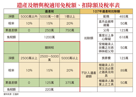用法制面補情感面的漏洞此外,很多人都會說「親兄弟、明算帳」,父母與子女間也要「明算帳」嗎?那不是就失去「親人」的意義嗎?其實站在「防患未然」的角度,我建議每位父母在情感面之外,也需了解法制面的規定,以補不足。也就是有贈與行為時,於「贈與契約」載明受贈人應履行之條件與要求,若沒達到時,得撤銷贈與或變更受贈人為女兒之類的。舉例來說,父母把房產贈與給哥哥,要求哥哥日後要盡扶養之責,萬一沒做到的話,則房產要移轉給指定的人(例如妹妹)。代辦不動產移轉登記的地政士,得在公定贈與契約書內的「申請登記以外之約定事項」記載贈與人的要求與條件(當然要書寫明確),一旦受贈的哥哥違反時,妹妹對哥哥就可憑該約定事項,向哥哥提起「移轉」物權登記的訴訟。此外,贈與時最好有「見證人」在場,因為很多長者會老去,或記憶力不好,口說無憑,不孝子若不認帳或對附條件之文字認定,產生爭執時,因為有「見證人」,在其不得已走至爭產訴訟時,也能多一項保障。針對已過戶房產的事後救濟,父母對子女還有一道緊箍咒,那就是房子雖然已移轉登記了,但可以把已過戶的房產再「信託」回來給父母管理,指定父母取得房屋的孳息(若房子有出租,則租金算是房屋的孳息),而只要載明信託的原本受益人是其子女即可,另也可載明父母死亡時,信託關係就消滅,此時,對子女來說,依然還是房產的產權所有人。在從事地政士業務三十多年,服務不少贈與案及繼承案,在此也不得不說,有些長者把房子送給小孩,又怕小孩轉手賣掉,因此,產生一些錯誤觀念,如「保管權狀」,以為把權狀扣在自己手裡,小孩就沒辦法賣,殊不知,房產一旦移轉登記給小孩後,產權所有人就換小孩的名字了,只要他去辦遺失,重新補發權狀,照樣可處分房產。另外,有些長者常以為「保管印章」也能防止小孩賣房,但其不了解,辦土地或房屋買賣所需要的是「印鑑章」及「印鑑證明」,買賣行為時,需檢附一年以內的「印鑑證明」,故小孩只要向戶政機關另申請「印鑑證明」,照樣能賣房。這種長者愛小孩,但又擔心小孩不珍惜,想加以掌控的矛盾作法,實在是不忍苛責。另有些長者雖然也擔心,房產若移轉給子女,會有不孝情況,但他們又會覺得,沒過戶的話,就無法「了心願」,即便告訴他,贈與的免稅額,一年才二百二十萬元,還不如未來再讓小孩繼承,依據《遺產及贈與稅法》規定,應繼遺產的免稅額至少有定額的一千二百萬元;但有些長者寧願繳贈與稅,就是想「了了心願」。《遺產及贈與稅法》第十八條(遺產免稅額)被繼承人如為經常居住中華民國境內之中華民國國民,自遺產總額中減除免稅額一千二百萬元;其為軍警公教人員因執行職務死亡者,加倍計算。 被繼承人如為經常居住中華民國境外之中華民國國民,或非中華民國國民,其減除免稅額比照前項規定辦理。 《遺產及贈與稅法》第二十二條(贈與免稅額)贈與稅納稅義務人,每年得自贈與總額中減除免稅額二百二十萬元。 除了遺產免稅額及贈與免稅額的「額度」差很多外,其實,在課徵遺產稅及贈與稅的稅率也因去年(民國一○六年)有修法而變化很大。遺產可扣除及免稅額較贈與高早先,遺贈稅法的課稅稅率依金額不同而採級距課徵,最高可課徵至五○%,此造成有錢人紛紛把錢移轉至海外的避稅天堂,讓政府課不到稅。而民國九十七年發生美國二房事件所引發的全球金融海嘯,政府為提振經濟,於民國九十八年一月二十一日修法,大幅調降遺贈稅率為單一稅率的一○%,以引導滯留海外的資金回台。不過,因大多數資金回台後卻投資房地產,造成過去房市長達十年的大多頭,房價飆漲,引發政府再打房,此時,有人再度要求調高遺贈稅率,因此,去年五月十日修法,再分成一○%、一五%及二○%等三個級距,其課稅級距及稅率卻有很大的不同(如附表)。《遺產及贈與稅法》第十三條(遺產稅率)遺產稅按被繼承人死亡時,依本法規定計算之遺產總額,減除第十七條、第十七條之一規定之各項扣除額及第十八條規定之免稅額後之課稅遺產淨額,依下列稅率課徵之: 一、五千萬元以下者,課徵百分之十。 二、超過五千萬元至一億元者,課徵五百萬元,加超過五千萬元部分之百分之十五。 三、超過一億元者,課徵一千二百五十萬元,加超過一億元部分之百分之二十。 《遺產及贈與稅法》第十九條(贈與稅率)贈與稅按贈與人每年贈與總額,減除第二十一條規定之扣除額及第二十二條規定之免稅額後之課稅贈與淨額,依下列稅率課徵之: 一、二千五百萬元以下者,課徵百分之十。 二、超過二千五百萬元至五千萬元者,課徵二百五十萬元,加超過二千五百萬元部分之百分之十五。 三、超過五千萬元者,課徵六百二十五萬元,加超過五千萬元部分之百分之二十。 一年內有二次以上贈與者,應合併計算其贈與額,依前項規定計算稅額,減除其已繳之贈與稅額後,為當次之贈與稅額。 繼承土地免徵土增稅以遺贈稅的一○%來看,贈與淨額為二千五百萬元,但遺產淨額為五千萬元,兩者的淨額足足差了一倍。此對一些家財萬貫的有錢父母來說,以遺囑的方式來讓小孩繼承房產,在課稅淨額上,至少比生前贈與來的好些。此外,就房地產的贈與來說,除了要繳贈與稅,也要繳土地增值稅,但若是遺產繼承的話,除遺產稅外,依法以繼承方式移轉之土地免課土地增值稅。遺產總額中另有相當