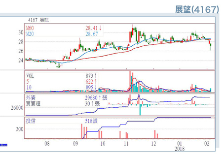 由於細菌多重抗藥性問題,新型抗生素大缺貨,美國FDA在二○一二年通過抗生素創新獎勵措施法案(GAINact),針對抗藥菌抗生素專賣期由原五年延長為十年,且在二○一四年發布最終版抗藥性感染藥品(QIDP)清單,凡合於清單內之藥品,將可加速新抗生素的臨床試驗,並加快新抗生素的上市核准,而吸引不少廠商投入抗生素的開發。國內第一大外銷針劑供應商展旺(4167),是全球第三大培南類抗生素藥廠,目前展旺開發的二個抗生素產品中,美洛培南(Meropenem)抗生素已佔營收約八成,另一項培南類學名藥產品-厄他培南(Ertapenem),為社區型感染第一線用藥。培南類藥物在美國法規要求嚴格,無菌結晶製程難度高,且需專廠專用,能供應的廠商十分少,過去有多家競爭對手因生產廠房查廠出問題而暫停供應,市場呈現寡占狀態。培南類藥物為廣效性抗生素,市場需求強勁,短期不易被其他新藥取代,公司未來可望逐步拓展市占率。市場預期厄他培南最快將於第一季獲准在美上市,目前與展旺洽談厄他培南美國地區銷售授權共有三家藥廠,預期三月底開始出貨。原廠MSD二○一六年在美國銷售額為三.二九億美元,二○一七年前三季為二.六八億美元,目前終端市場價一劑約一○五美元。根據中信證券估算,假設展旺首年出廠價為四五美元,市佔率十一.五%(美國市場一年需求量約四百萬劑),預估將可貢獻營收六.二億元台幣;二○一九年出廠價三三美元,市佔率三二%,營收貢獻十三.八億元台幣。